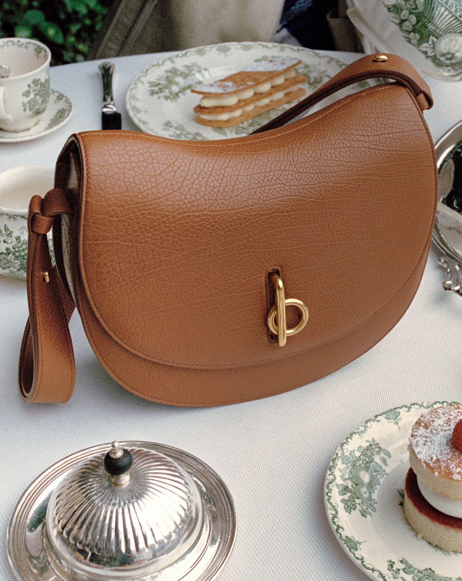 버버리가 최근 선보인 새로운 에디션의 로킹 홀스 백은 버버리의 승마 유산을 담고 있다. 어린 시절의 흔들 목마 장난감을 연상시키는 부드러운 곡선 실루엣과 고삐에서 영감을 받은 스트랩을 통해 승마의 세계를 표현하였고 소문자 b를 형성하는 잠금장치와 뒷면의 엠보싱 기마 기사 디자인 디테일이 특징이다.