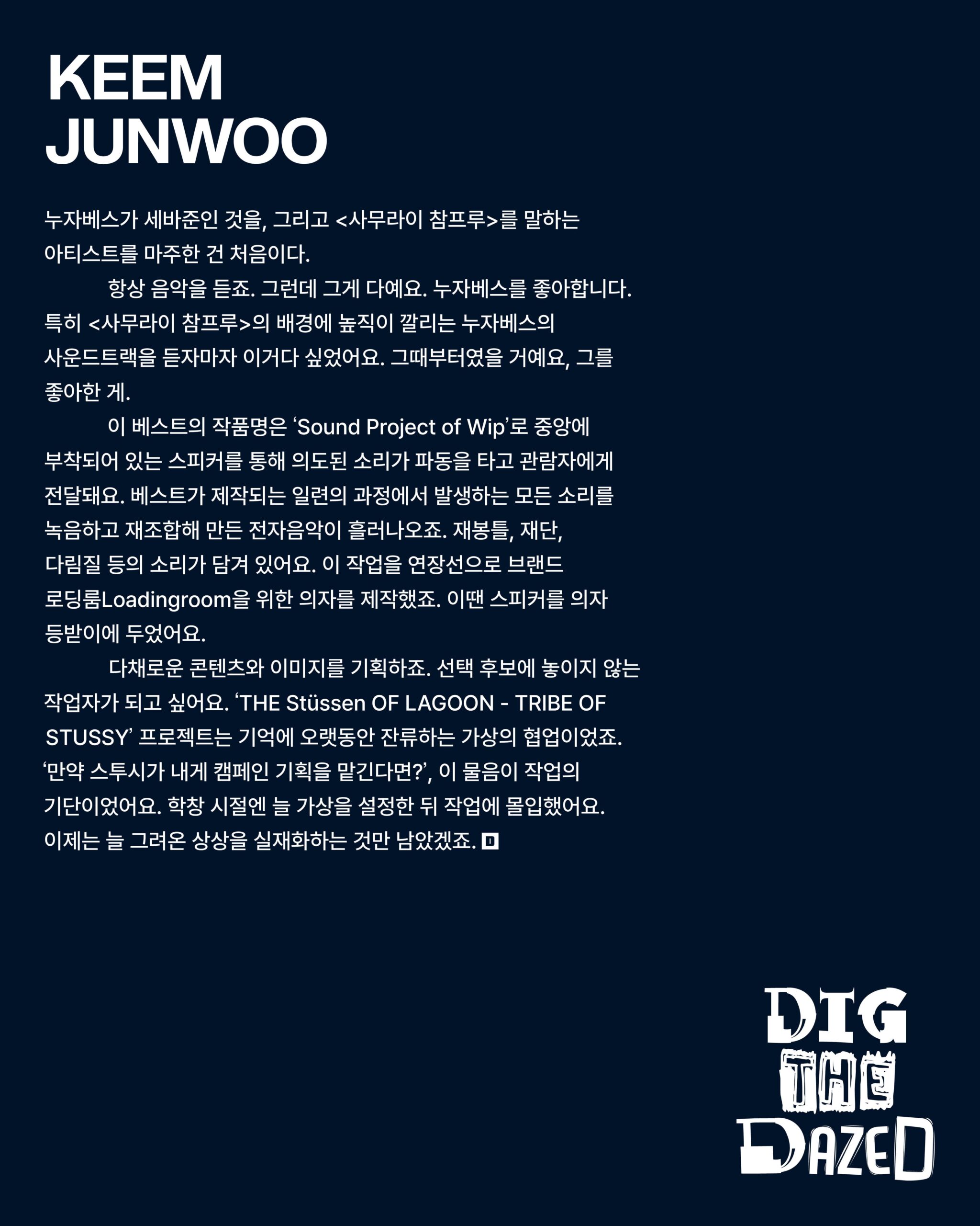 누자베스가 세바 준인 것을, 그리고 <사무라이 참프루>를 말하는 아티스트를 마주한 건 처음이다.