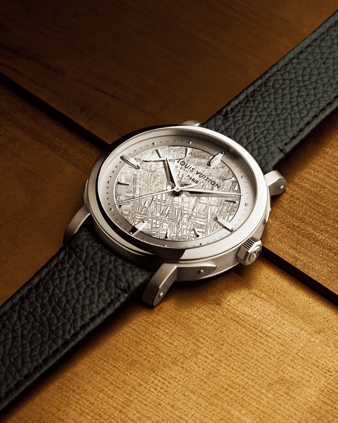 다이얼 위 시계 바늘 두 개가 맞닿는 유일한 시간, 12시. 12시 방향의 루이 비통 로고 아래에는 에스칼의 창조와 재탄생에 대한 모든 것을 함축하는 단어 ‘파리(PARIS)’가 새겨져 있다. 재탄생한 디자인의 핸즈는 보자마자 루이 비통 쿠튀르와 가죽 제품이 떠오르고, 바늘처럼 섬세한 형태는 메종만의 정교함을 드러내며, 정확한 선으로 한 치의 오차도 없는 다이얼은 장인의 엄격함과 철저함을 내포한다. 또 에스칼의 핸즈는 클래식한 루이 비통 가죽 제품이 오버랩되고, 노란색 스티치는 메종의 모든 제품에 공통적으로 깃든 장인정신, 그 핵심을 관통한다. 크라운에는 루이 비통 트렁크에 사용한 리벳 모양의 돔을 얹고, 루이 비통 모노그램을 새겼다. 이 크라운은 새틴 브러시드 미들 케이스 양면으로 마치 쓸어내린 듯한 효과를 만들어 와인딩과 세팅에 용이하다. 이는 수작업으로 광택 및 마감 처리한 장식용 리벳으로 된 러그로 자연스레 이어진다. 지난 10년간 선보인 에스칼에서 볼 수 있듯이, 시계의 러그 부분은 각진 모서리, 황동 브래킷과 리벳 등 메 종의 상징인 트렁크를 연상시킨다. 마감 처리는 수작업으로 이루어지며, 한 표면에서 다음 표면으로 정확하게 마감 처리를 하기 위해서 는 장인의 숙련된 기술이 필요하다. 이런 각 구성 요소는 시계의 다른 요소에 비해 대조적인 마감 덕분에 시계 전체에 유기적 우아함을 더한다. 굳게 감았던 눈을 뜬다. 몇 시간이 지난 걸까. 이토록 고요할 틈이 있었나. 시간은 여전히 6월 17일 12시를 가리키고 있다. 아, 파리다. 나의 파리는 자아 발견의 시간으로, 그리고 재탄생으로. 12시 방향의 루이 비통 로고처럼 그 아래 PARIS처럼 보고된다. 루이 비통 에스칼, 그 10년의 여정처럼.