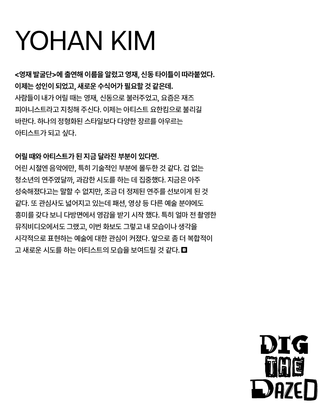 Beyond Prodigy and Jazz Pianist, Artist Yohan Kim