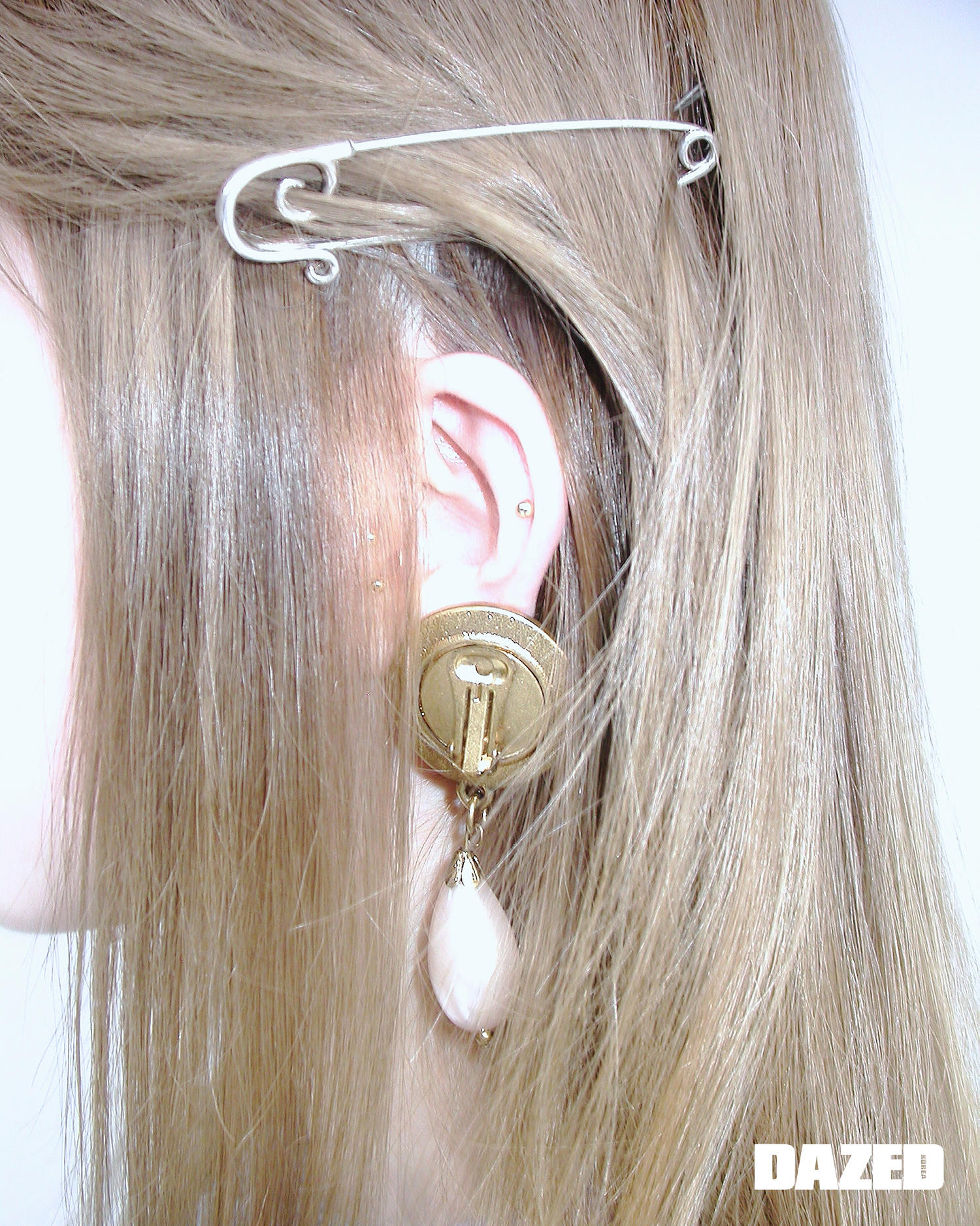 이어링은 모스키노(Moschino), 헤어핀은 쇼 주얼리(Scho Jewelry).