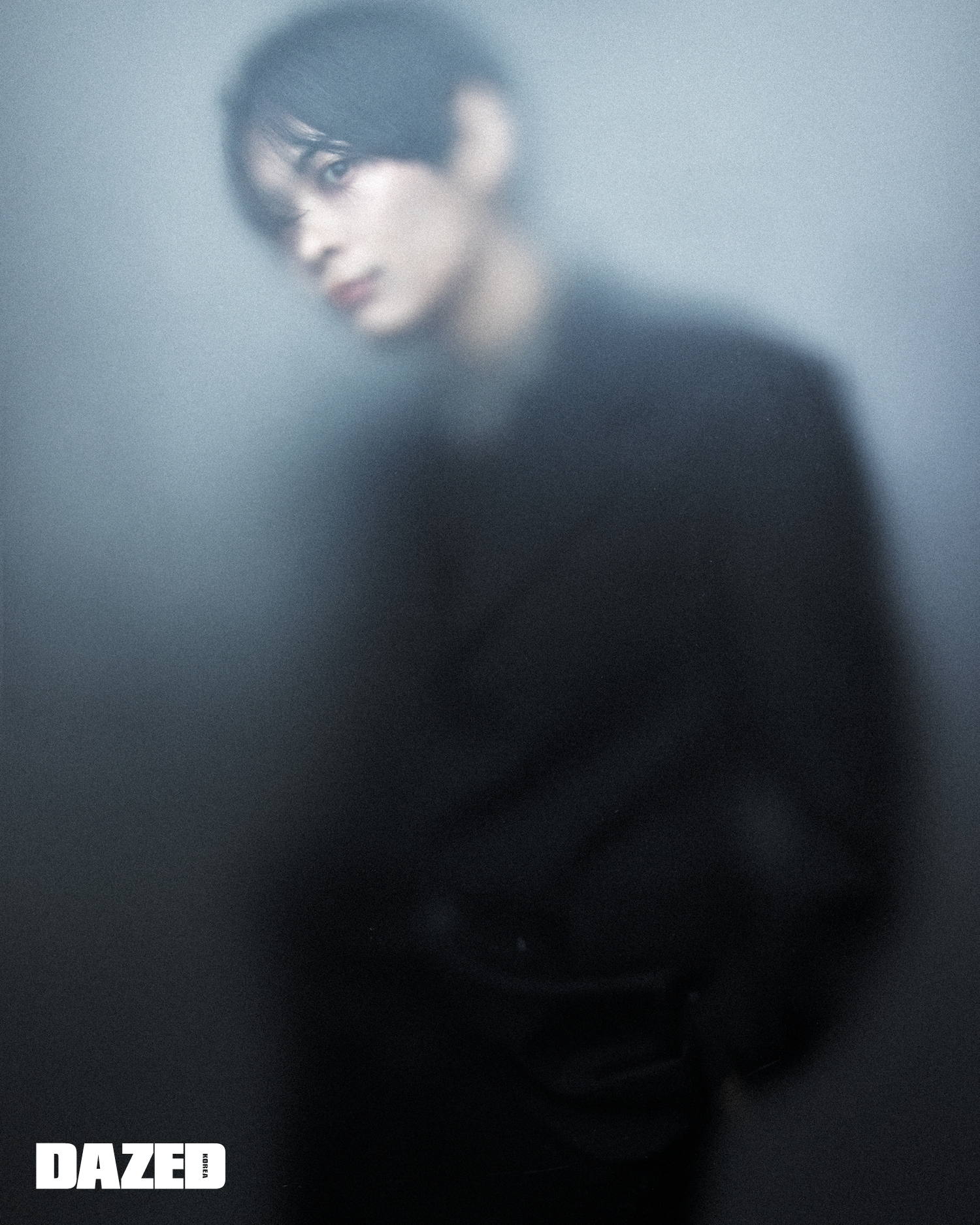 블랙 재킷은 토니 웩(Tony Wack), 시스루 이너 톱과 체인 초커는 스타일리스트의 것.