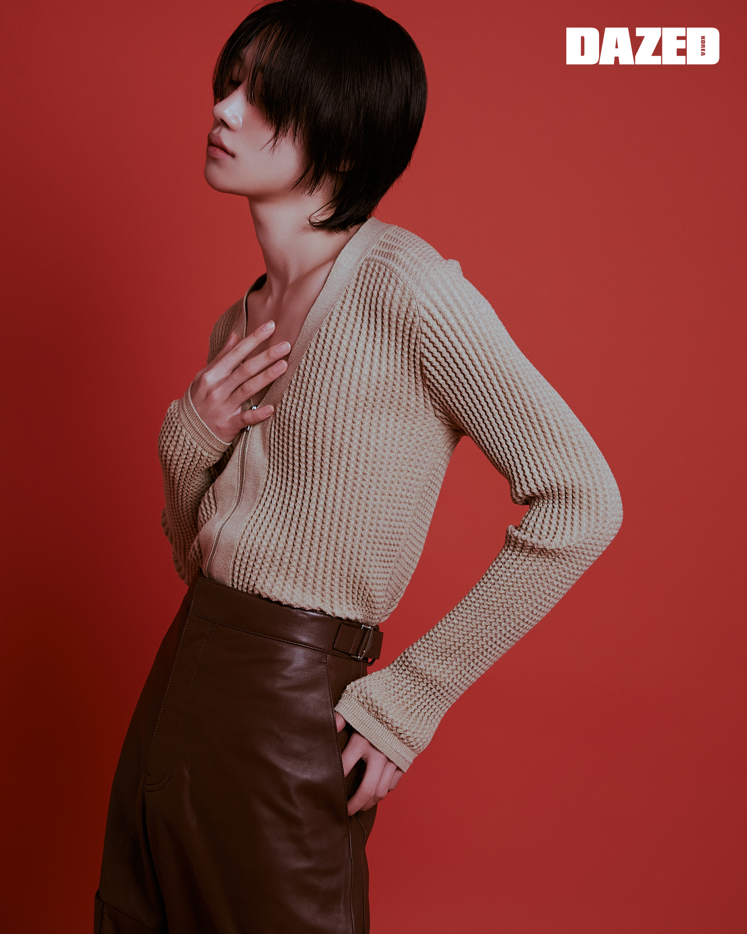 화보를 찍을 때 기자님들의 콘셉트 해석 스타일을 정말 좋아하거든요. 뭔가 의도 를 유추하게 된 달까. ‘왜 이걸 나한테 하려고 하실까’, ‘이걸 내가 어떻게 소화해 야 할까’ 고민하며 간혹 걱정되기도 하지만 그 속에서 재미를 느끼는 편이에요. 내 가 아닌 다른 나를 보여줄 수 있다는 게 너무 재밌어요. <싸이보그지만 괜찮아> 라는 영화, 그 메이크업을 넣은 의도와 해석이 정말 기대되고 좋았어요.