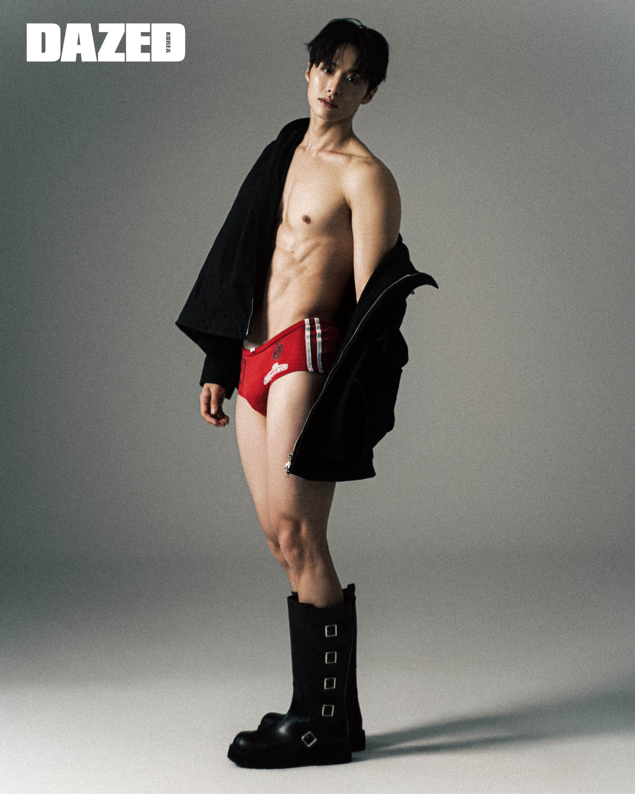 그레이 트렁크는 캘빈클라인 언더웨어(Calvin Klein Underwear), 재킷과 쇼츠, 브리프는 모두 에디터의 것.