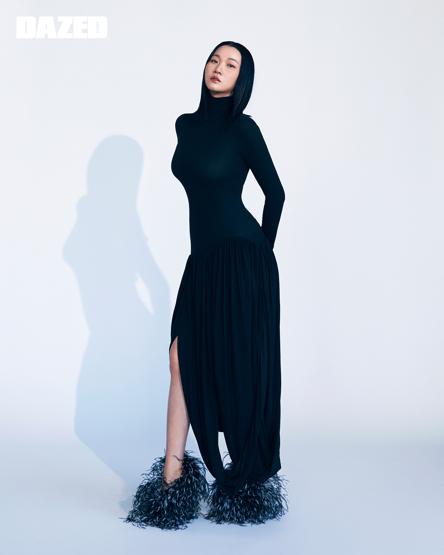 블랙 블레이저는 알렉산더왕(alexanderwang), 터틀넥 톱은 에디터의 것.