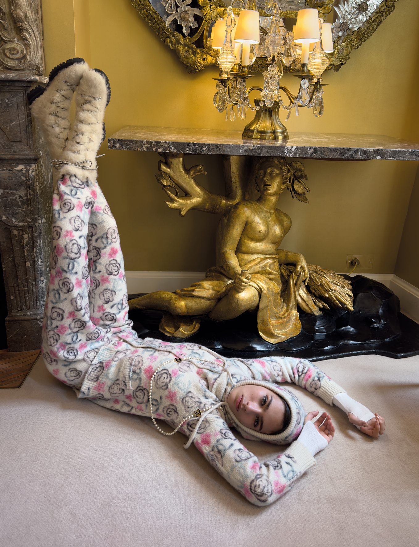 롤리 바히아의 대담하고 무심한 태도, 유서 깊은 공간의 대비. 이러한 이중성은 편안함과 스타일에 뛰어난 기술력을 결합한 이번 컬렉션의 혁신적인 접근 방식과 샤넬의 타임리스한 코드 사이에 오가는 대화를 완벽하게 보여준다. 세련된 아파트에서 눕거나 기대거나 앉아 있는 롤리 바히아의 자유로운 모습은 코코 네쥬 컬렉션의 대담한 정신, 그리고 장난스러운 엣지를 돋보이게 만든다.