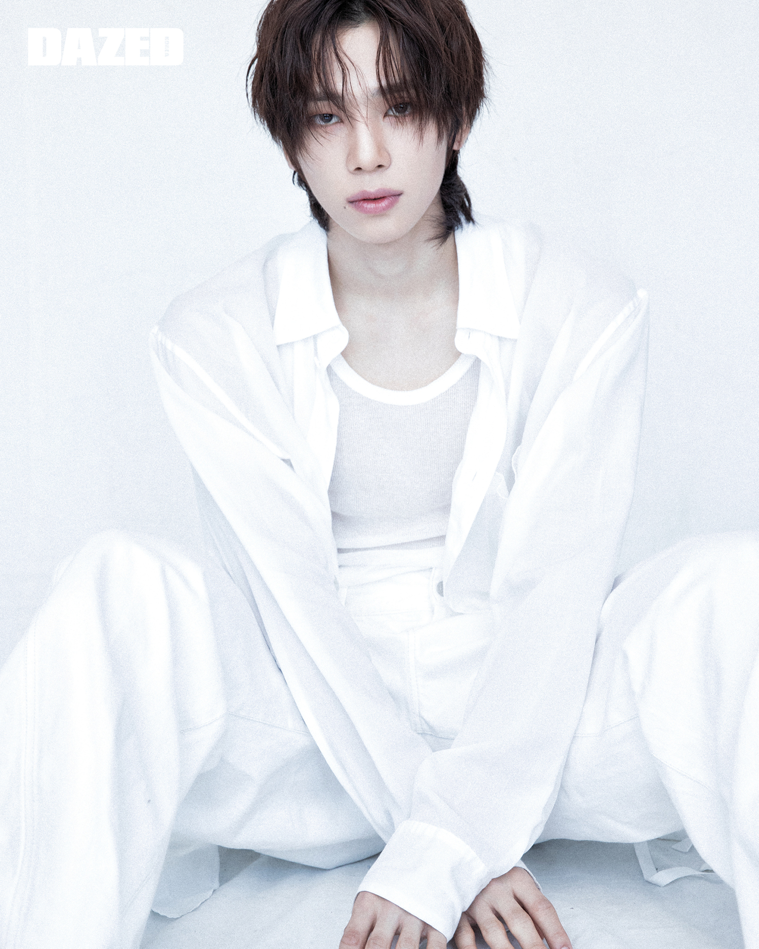 휴이가 입은 칼라 포인트 셔츠는 준태킴(Juntae Kim), 이어링은 스타일리스트의 것. 세이타가 입은 롱 셔츠는 본봄(Bonbom), 레이어링한 톱은 스타일리스트의 것. 유우가 입은 셔츠는 베드 j.w. 포드 by 무이(Bed j.w. Ford by MUE), 이어링은 스타일리스트의 것. 소 건이 입은 셔츠는 설밤(Sulvam), 톱과 팬츠는 스타일리스트의 것. 유키가 입은 팬츠는 솔리드 옴므 X 스테판 쿡(Solid Homme X Stefan Cooke), 셔츠와 니트 톱은 스타일리스트의 것. 하루가 입은 셔츠는 앤 드뮐미스터 by 분더샵(Ann Demeulemeester by BOONTHESHOP). 토모야가 입은 셔츠는 2728, 시퀸 베스트는 스타일리스트의 것.