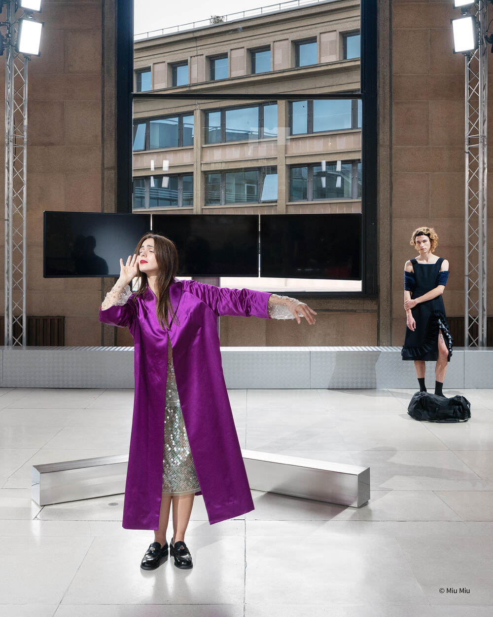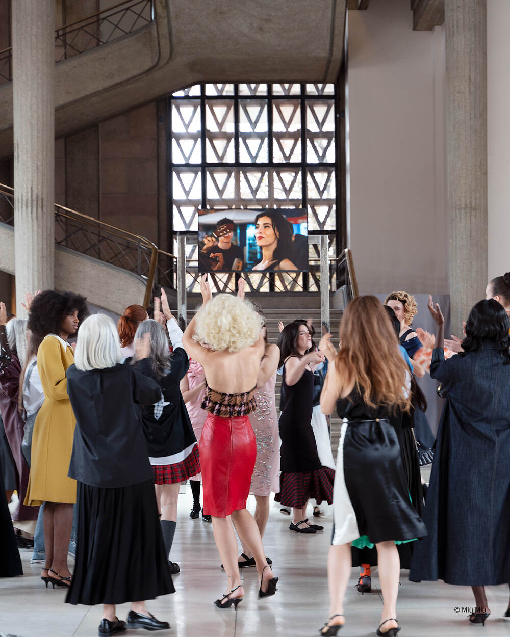 GM 팔레 디에나는 이 공간과 공간이 지닌 역사를 돌아볼 때 매우 독특한 곳이다. 고대 그리스 아고라나 극장이 연상되기도 한다. 그건 이 공간에 깊이 뿌리내린 이야기와 기술, 혁신, 사회에 관한 담론 때문이다. 미우미우 우먼스 테일 속 영화 캐릭터들은 각각 존재하다 이 전시에서 하나의 공동체가 되어 관객에게 다가간다.