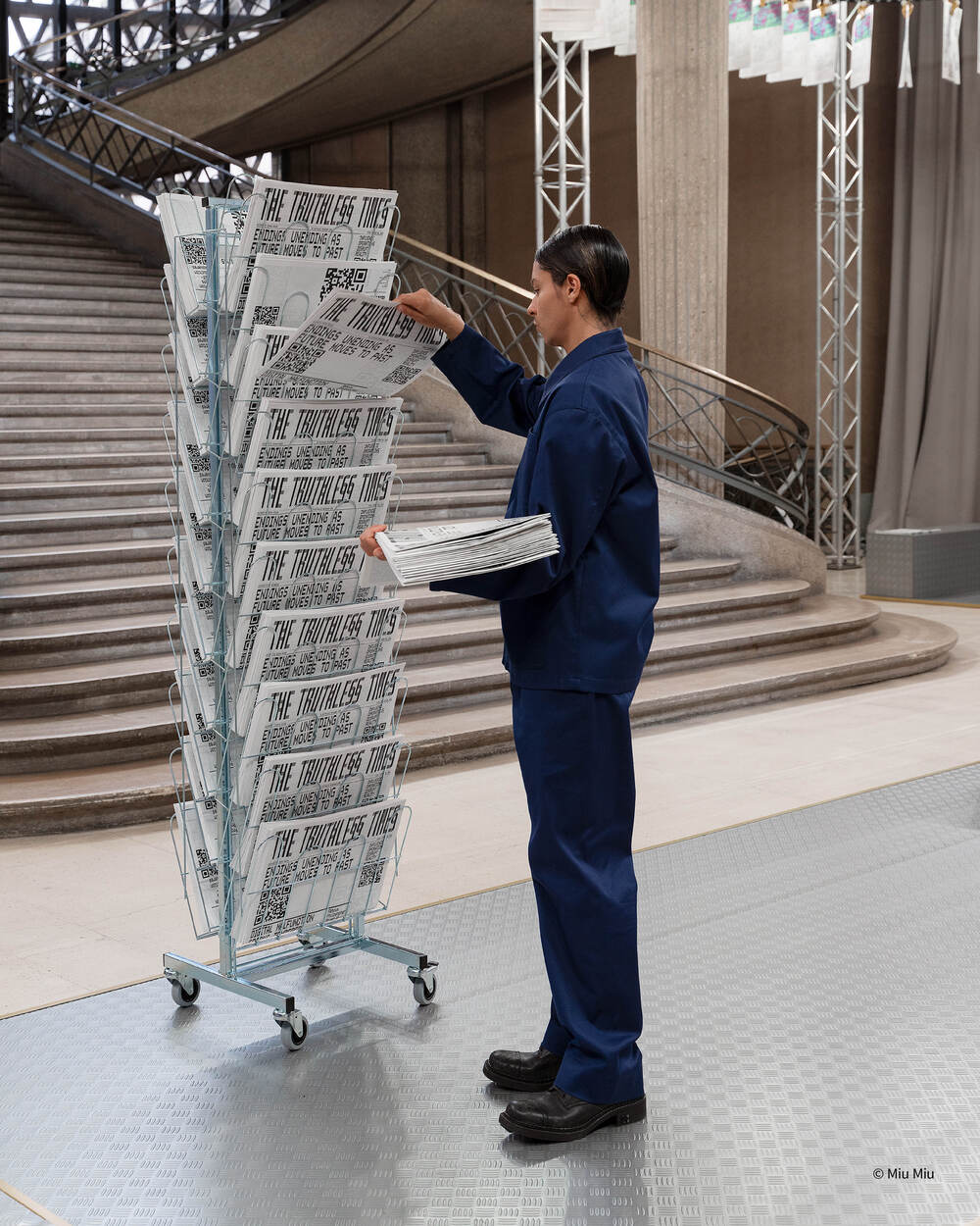 고쉬카 마추가, 당신이 작업한 쇼의 설치 작업에 대해 설명을 더 듣고 싶다. 신문 ‘The Truthless Times’가 컨베이어벨트에 달려 쇼장을 한 바퀴 돈다. 쇼의 주제 역시 진실과 거짓, 조작을 은유하는 듯한 ‘설탕처럼 보이는 소금(Salt Looks Like Sugar)’이었다.