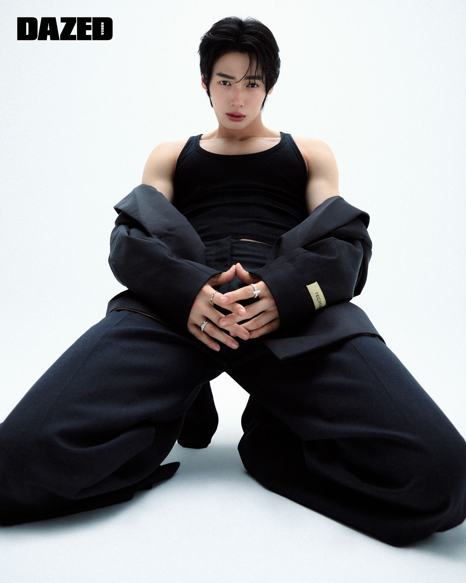 재킷과 팬츠는 테친 언더그라운드(Techin Underground), 모든 링은 티파니(Tiffany & Co.), 톱과 삭스는 스타일리스트의 것.