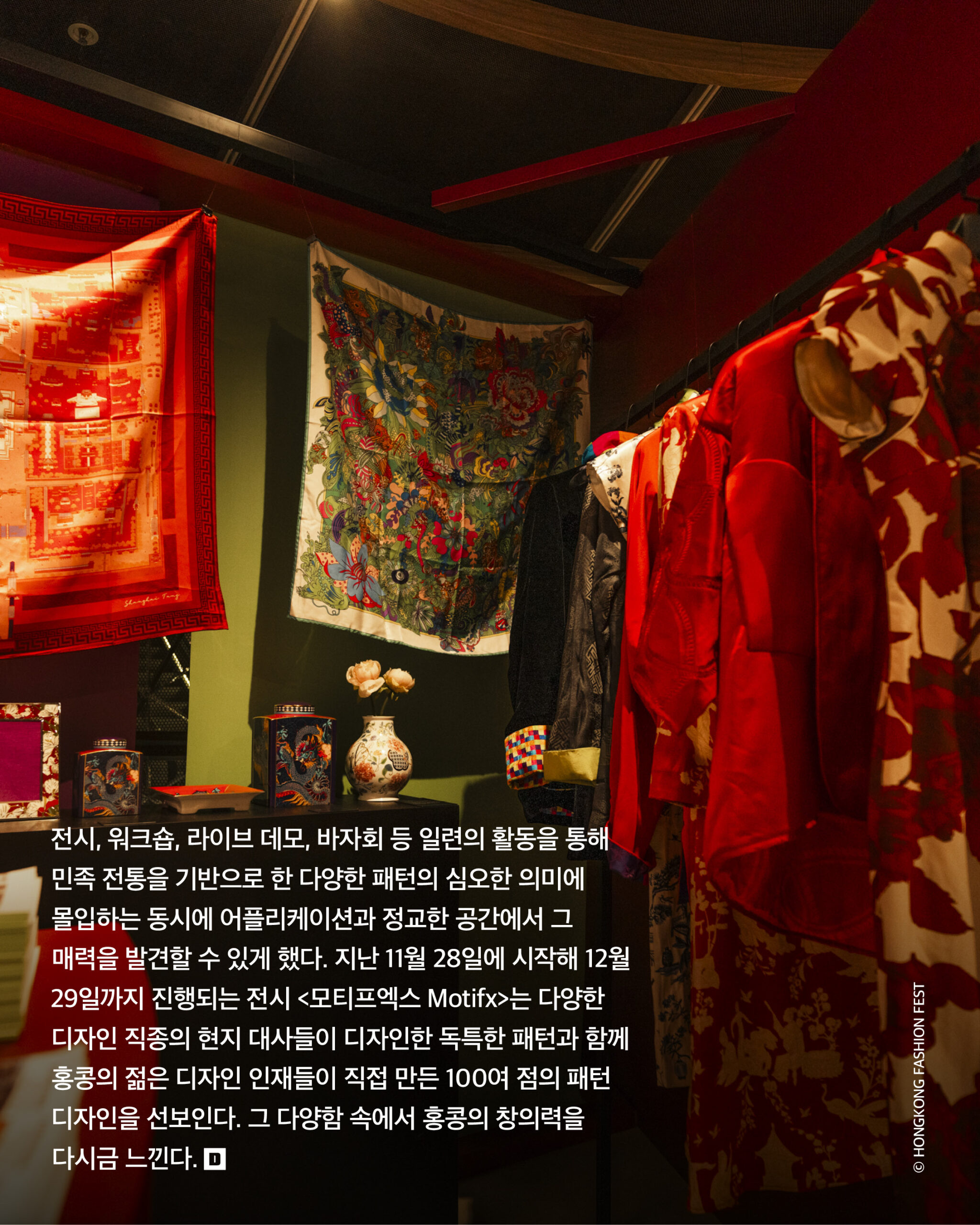 지난 11 20일부터 12 4일까지, 홍콩에서 열린 패션 디자인 주간홍콩 패션 페스트는 글로벌 패션 허브로서 홍콩이 내딛는 첫발이다. 국제 문화 교류에 있어 동서 만남의 중심 역할을 담당하는 홍콩답게, 15개국 이상의 패션 디자인 산업, 비지니스 리더, 패션 애호가, 시민, 관광객 등이 함께 모여 축하했다. 축제 곳곳에서는 홍콩의 창의적인 에너지가 가득 느낄 수 있었다. 그중에서도 패션 유니온 Fashion Union과 모티프엑스 Motifx를 소개한다. 홍콩의 독특한 색채와 세계적인 감각을 접목해 젊은 디자인 역량을 선보인, 아주 특별하고도 아름다운 이야기.