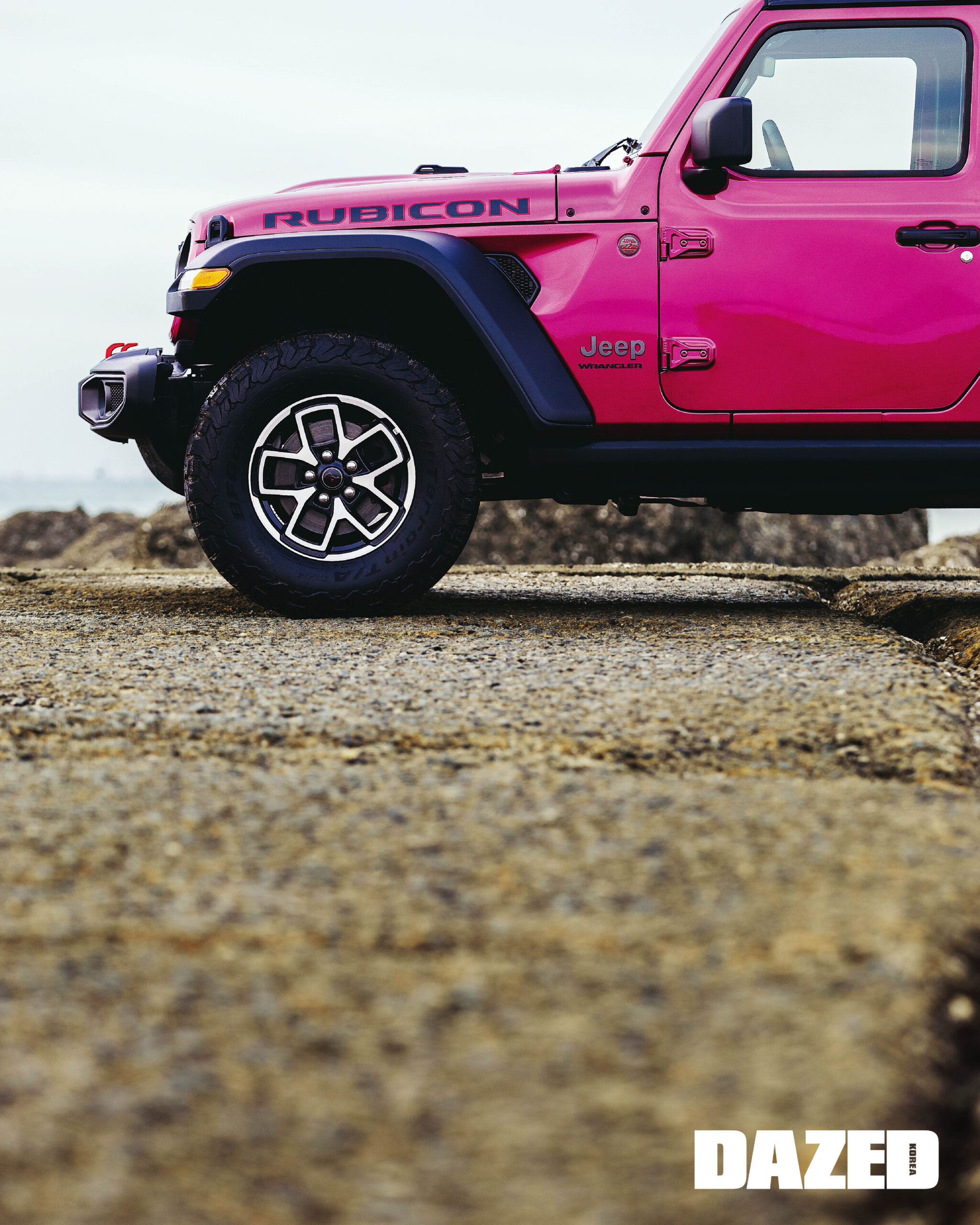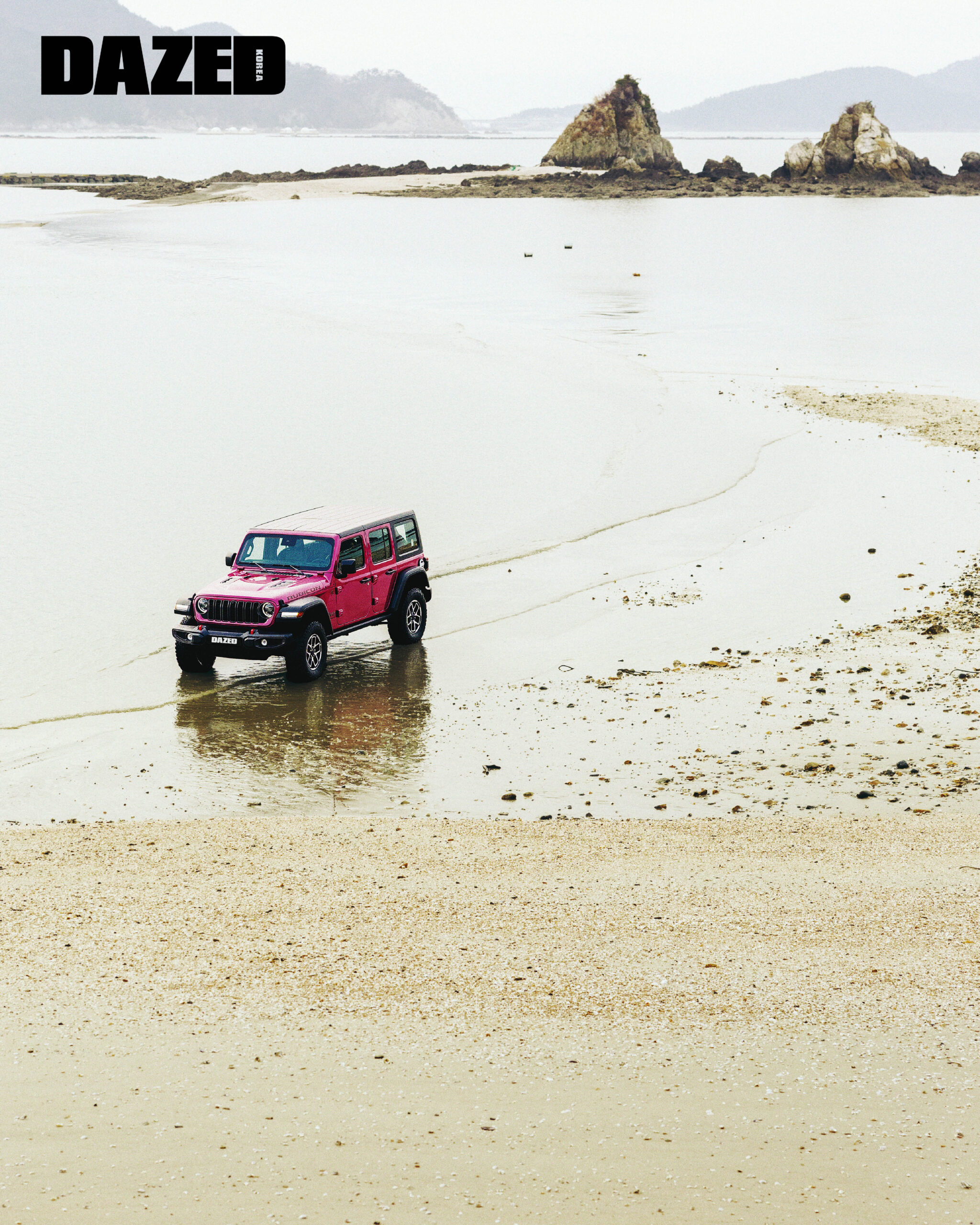 “기자님, 우리 큰일 난 것 같아요. 바퀴가 모래에 빠졌어요.” 새벽 여섯 시, 수면 위로 뜬 태양이 바다를 붉게 적실 즈음 태안 앞바다에 물이 차오르기 시작했다. 우두커니 모래사장에 서 있는 지프 랭글러는 어슴푸레한 빛을 받아 묘한 광채를 띠고 있었다. 생동감 넘치는 강렬한 핑크색. 해가 뜨거나 지거나 그 찰나에 느낄 수 있는 아름다움에 넋을 놓을 때가 아니었다.