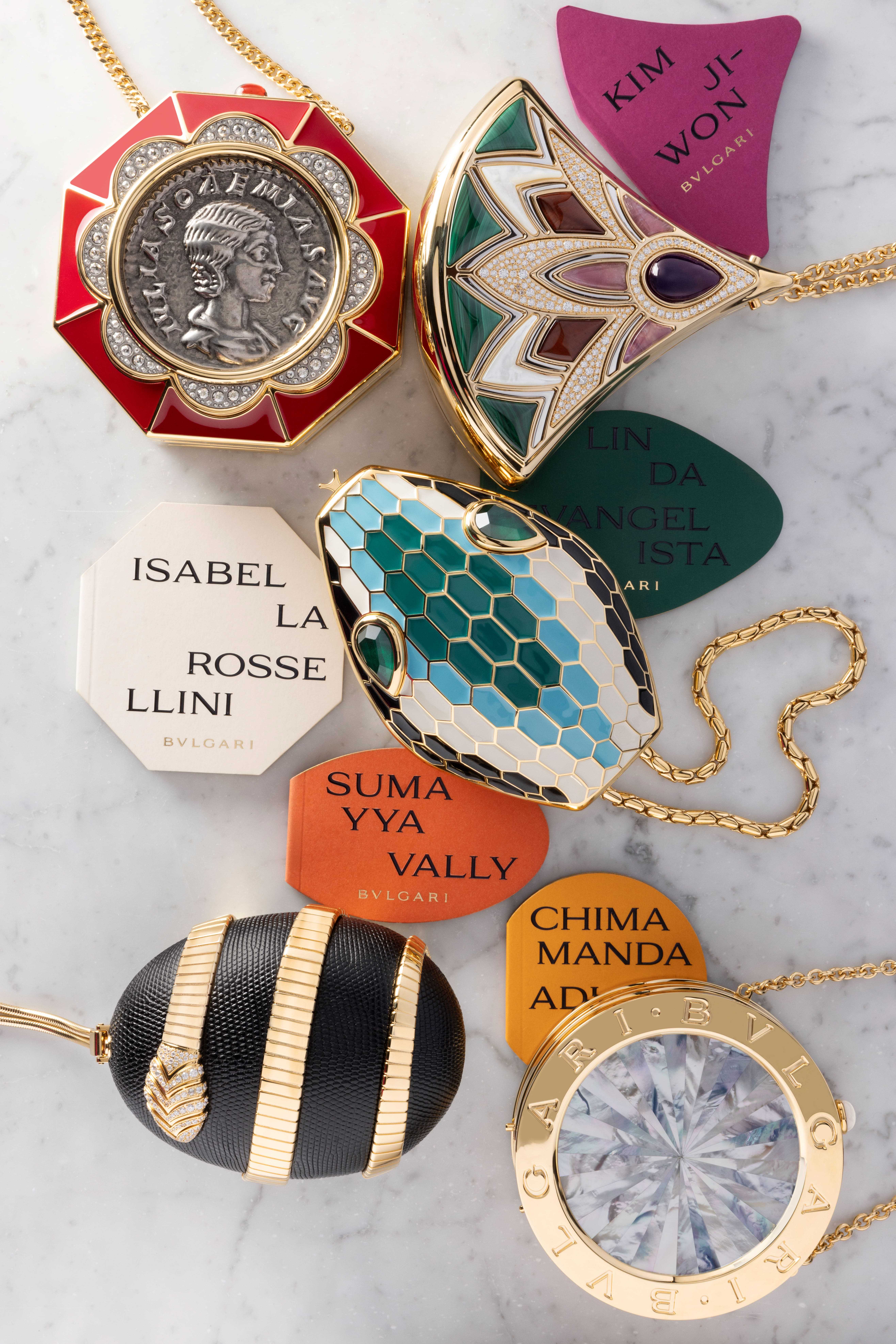 컬렉션은 하우스의 다섯 아이콘 모네떼Monete, 투보가스Tubogas, 디바스 드림Divas’ Dream, 불가리 불가리BVLGARI BVLGARI, 세르펜티Serpenti와의 대화를 통해 탄생했다. 이러한 상징은 표면의 장식으로만 쓰이지 않는다. 모티브를 덧붙이는 데 그치지 않고 구조를 다시 짠다. 금속 곡선이 손안에서 만들어내는 긴장, 잠금장치를 여닫을 때의 리듬, 자개와 스톤의 인레이가 빛을 받아 반응하는 깊이까지. 마치 우아하고 얌전한 외침 같다.