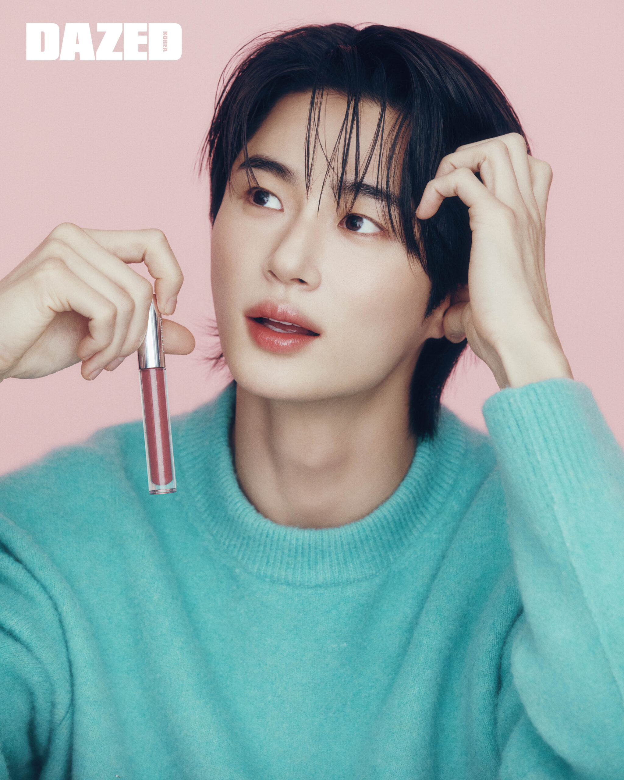 핑크 니트 톱은 자라(Zara), 팬츠는 COS, 슈즈는 스튜디오니콜슨(Studio Nicholson).
