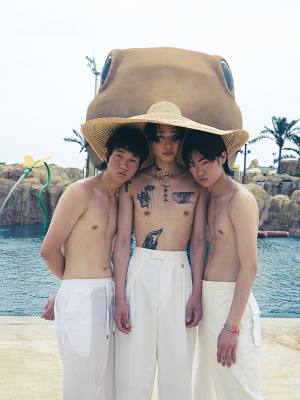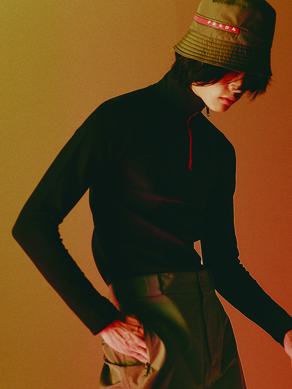 레이스 소재의 슬리브리스 드레스는 크랭크(Crank), 폴로 칼라 니트 톱은 마르니(Marni), 네일 팁은 클로아나(Clawana), 헤어핀은 스타일리스트의 것.