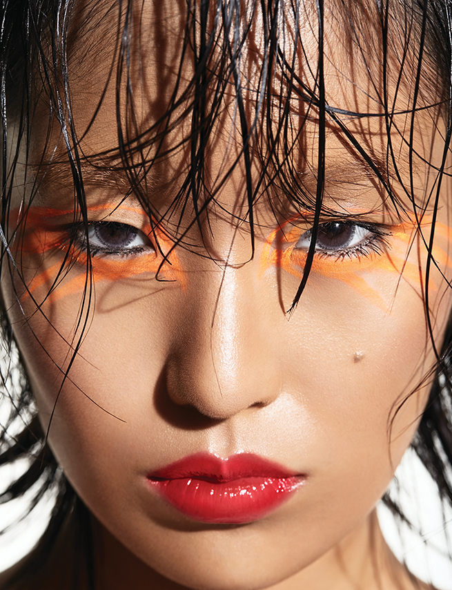 눈두덩에 루즈 블러쉬 컬러 & 글로우 287 디올아무르를 넓게 펴 발라 화사한 광채와 입체감을 더하고, 디올쇼 5 꿀뢰르 – 글로우매니아 리미티드 에디션 812 핑크매니아의 페일 골드와 라군 블루 컬러를 레이어링해 우아하고 빛나는 눈매를 연출한다.