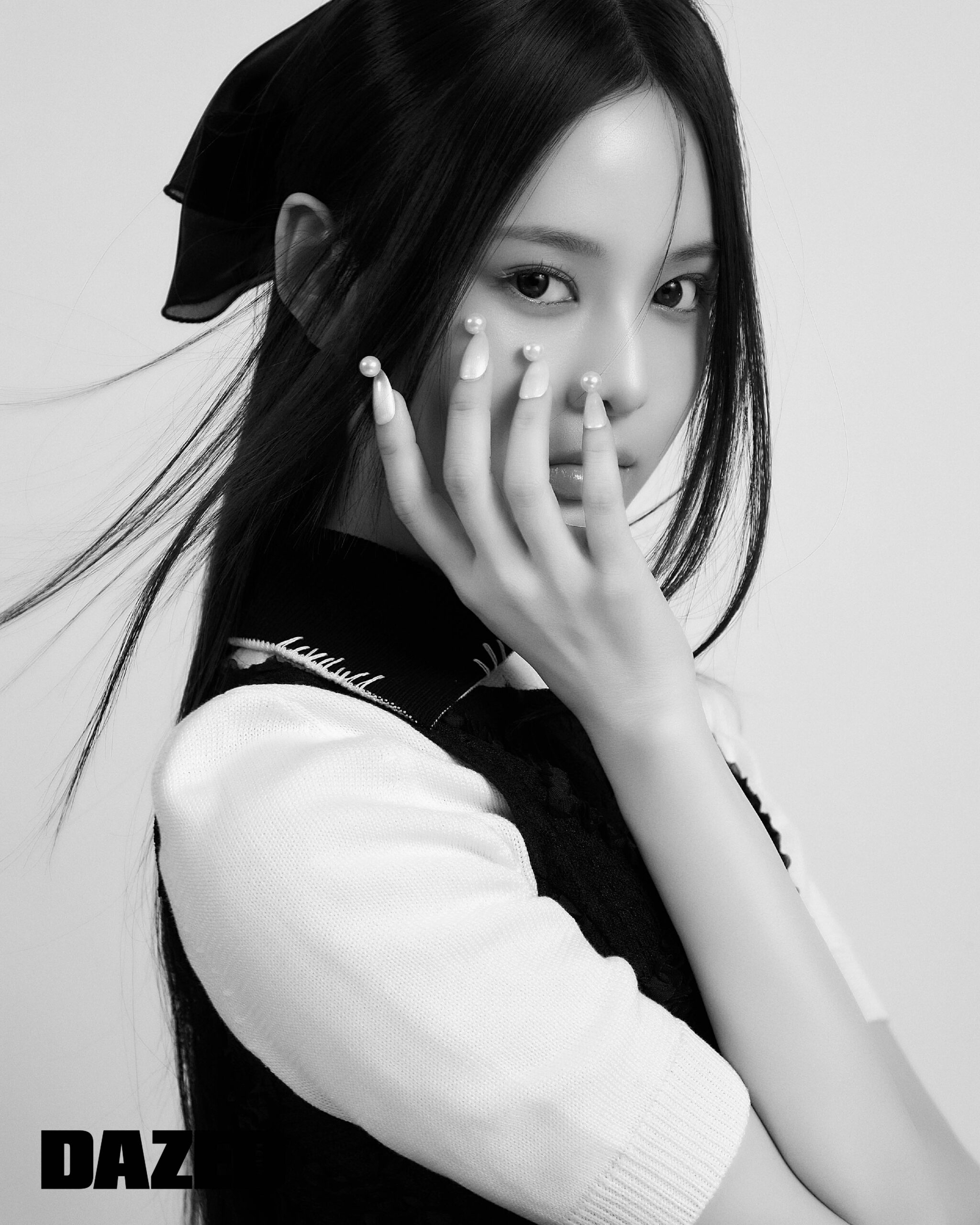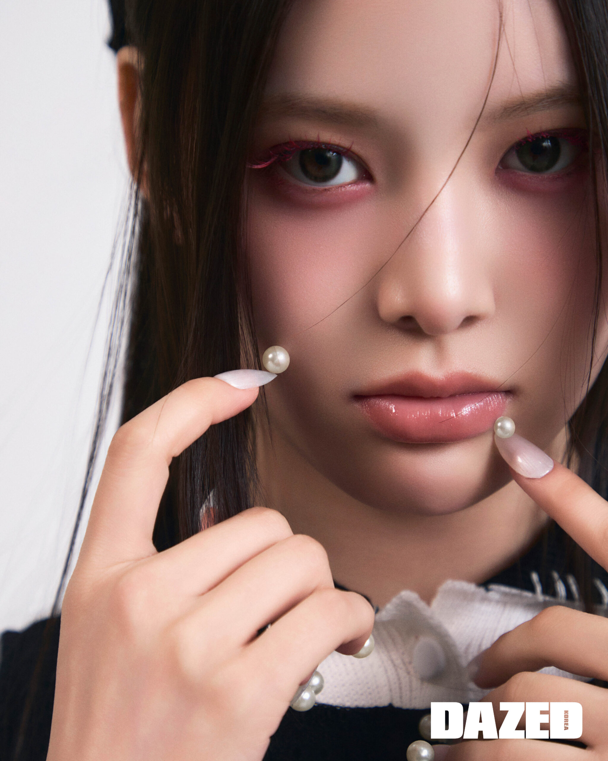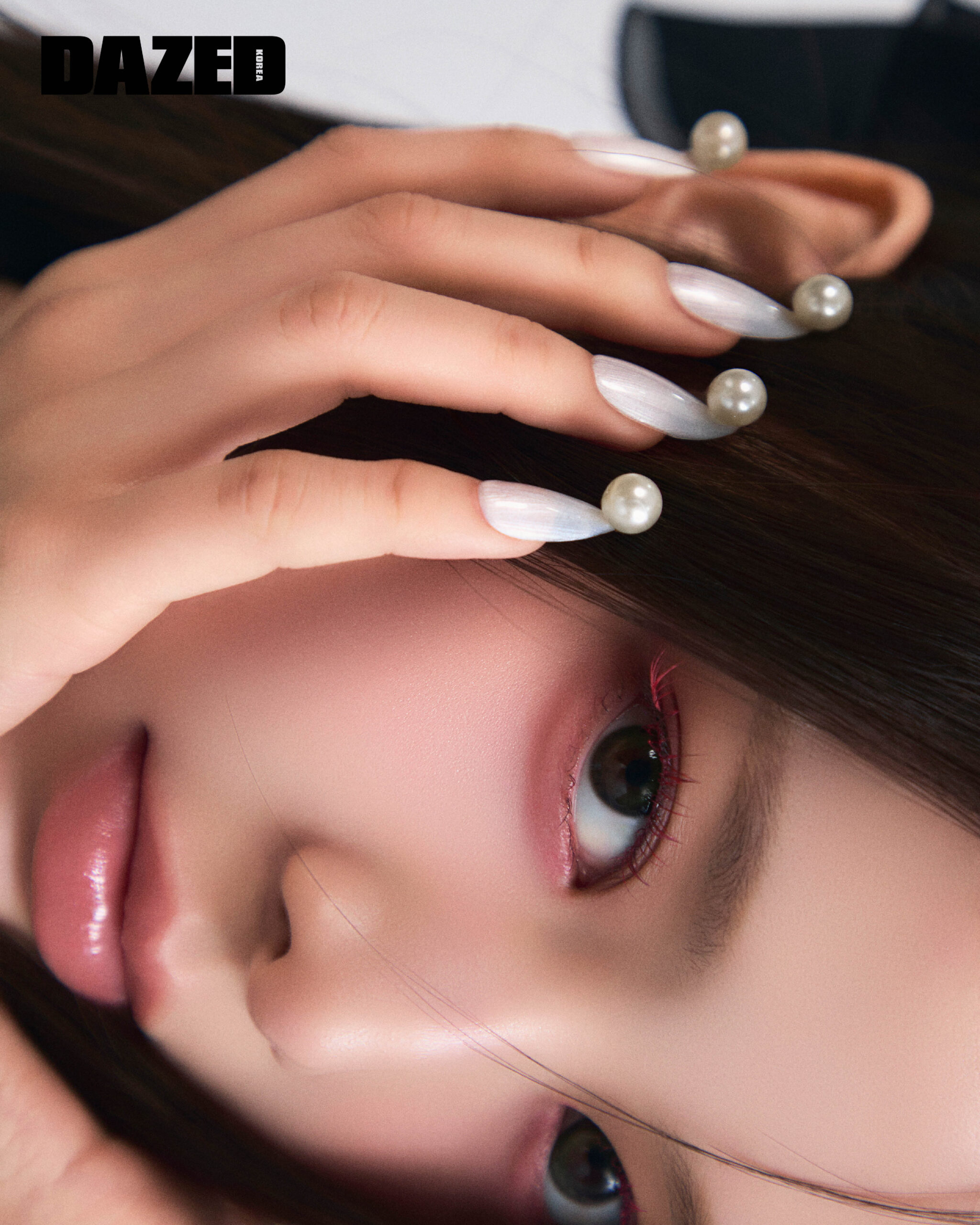 칼라 톱은 오픈와이와이(Open YY), 네일 팁은 클로아나(Clawana), 헤어핀은 스타일리스트의 것.