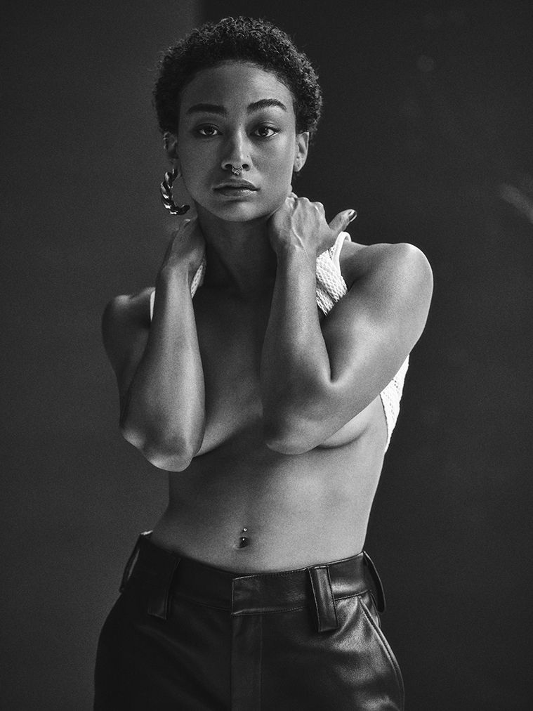엄마를 닮았다는 밝은 눈동자와 눈매. 눈 밑 점을 더욱 진하게 연출하고 입술 전체를 모노 톤으로 물들여 생기를 살리는 동시에 혈색을 불어넣었다. 수채화처럼 맑은 발색을 자랑하는 NEW 아이코닉 익스플리싯 립스틱 3.8g 5만2000원대, 나스(Nars).