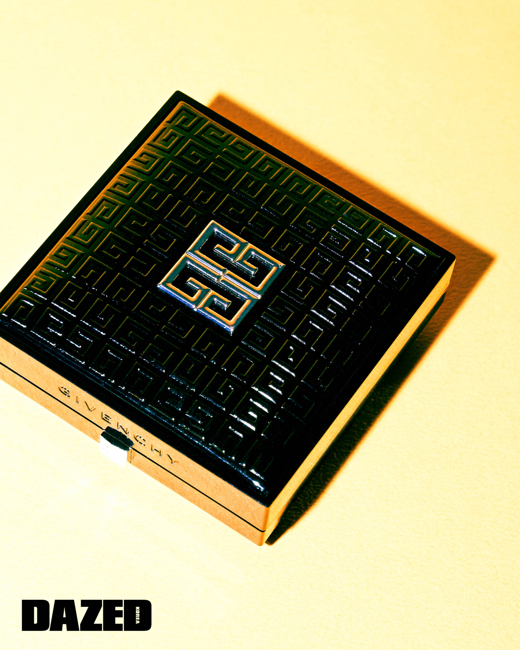지방시의 4G 모노그램 엠보 패턴과 정교한 광택 코팅으로 뒤덮인 블랙 사각 케이스. 중앙에는 메탈릭한 4G 로고가 빛에 따라 다각도로 반짝이며 존재감을 드러낸다. 스킨 케어링 성분을 함유해 피부에 촉촉하게 발리고, 내장된 하트 모양 퍼프는 베이스 메이크업에 정교함을 더한다.