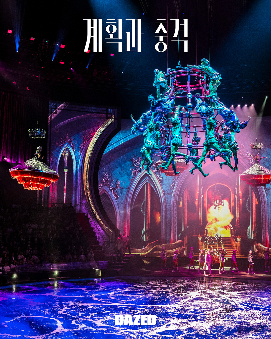 공연장은 1,700만L 규모의 거대한 원형 수영장으로, 객석은 공연장을 270도로 둘러싸고 있다. 출연진은 객석에도 등장한다. 18세기 유럽에 등장한 것으로 추정되는 캐릭터가 자신의 보물을 자랑하고, 또 관객의 휴대전화를 신기하게 바라보며 셀카를 찍는다. 출연진끼리 다투고 도망가고 서로를 붙잡으려는 모습을 보면, <하우스 오브 댄싱 워터>는 막이 오르기를 기다리는 시간조차 공연의 일부라는 걸 알 수 있다. 관객이 객석을 채우고 모든 준비가 끝나면, 공연은 객석에서부터 시작된다. 악의 군단처럼 보이는 무리가 등장하고, 이를 피해 주인공은 소중한 검을 숨기고는 달아나 버린다. 검은 바로 관객에게 자랑하던 그 보물이다.