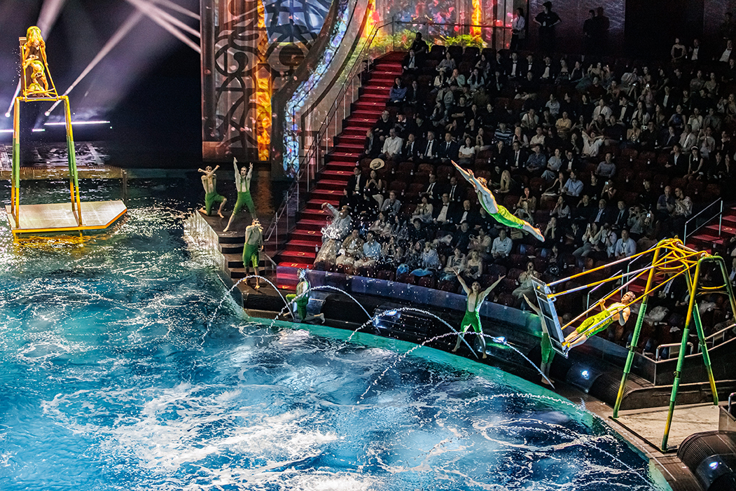 <하우스 오브 댄싱 워터>의 원형 공연장. 공연장은 객석에 둘러싸여 있다.