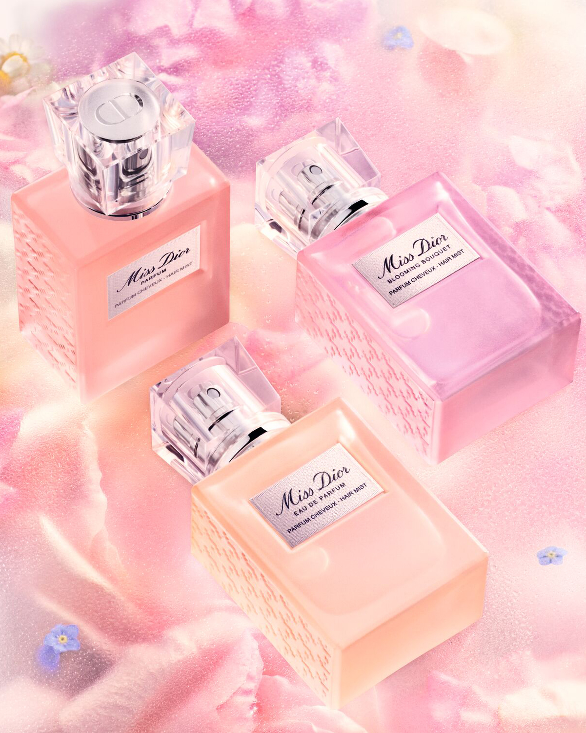 화이트 머스크와 부드러운 로즈의 스파클링 플로럴 향의 미스 디올 블루밍 부케 헤어 미스트, 부드러운 벨벳과 산뜻하고 다채로운 플로럴 매력을 가미한 미스 디올 오 드 퍼퓸 헤어 미스트, 앰버 우드 노트 베이스에 프루티한 조화를 더한 미스 디올 퍼퓸 헤어 미스트 모두 30ml 7만7000원대, 크리스챤 디올 퍼퓸(Christian Dior Parfums).