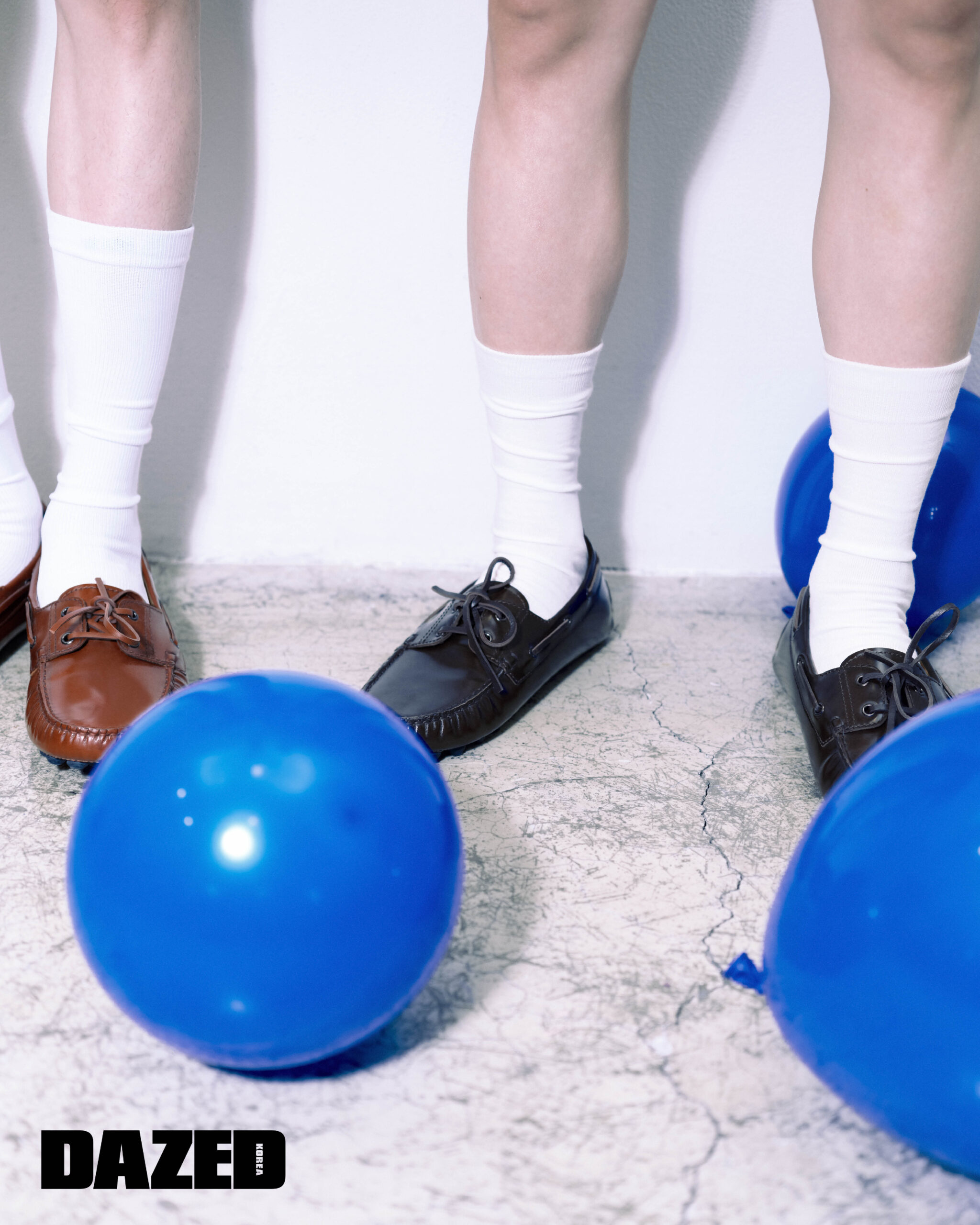 규빈이 신은 카프스킨 소재의 브라운 세미 유광 레더 보트 고미노 슈즈는 토즈(Tod’s), 삭스는 에디터의 것. 매튜가 신은 카프스킨 소재의 다크 브라운 세미 유광 레더 보트 고미노 슈즈는 토즈(Tod’s), 삭스는 에디터의 것.