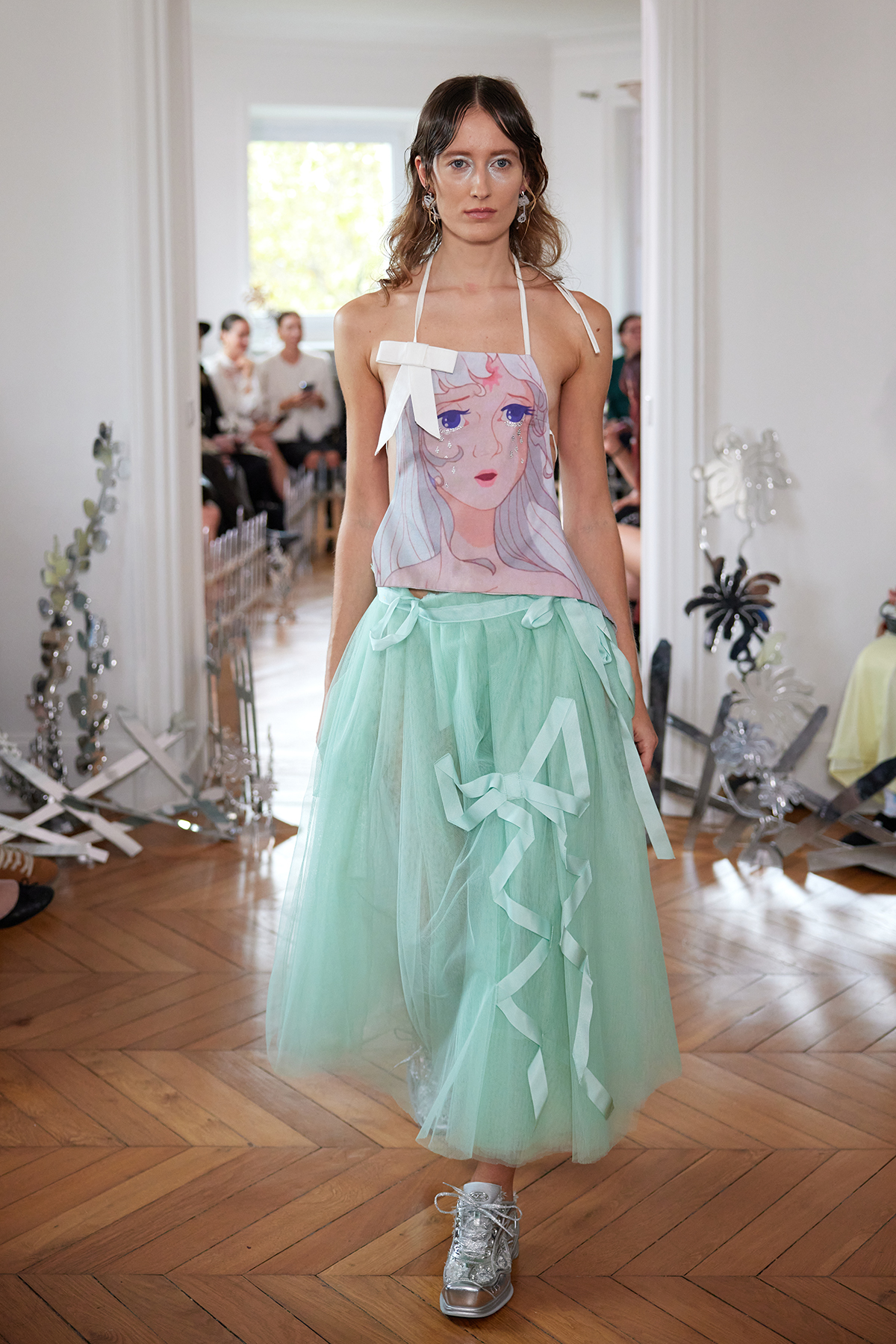 파리 디즈니랜드 한복판에서 펼쳐진 코페르니의 이번 쇼가 유독 강력한 후폭풍을 남긴 이유다. 직접 목격하지 않았지만, 다리를 다쳐 거동이 불편한 나의 편집장마저 가냘픈 목발에 의지한 채 홀린 듯 디즈니성을 향해 내달렸다고 들었다. 살면서 단 한 번도 놀이공원에 가보지 못했다는 그의 마음엔 어떤 동심이 훨훨 타오르고 있었을까. 직업도, 위치도, 나이도 구분 없이 모든 이에게 통하는 만국 공통어 ‘동심’의 파워는 크다. 마치 수학여행 가듯 단체로 쇼장에 도착해 추러스를 손에 쥐고 두근거리는 마음으로 쇼 시작을 기다리는 마음. 성 위로 터지는 불꽃이 동화 속 한 장면처럼 밤하늘을 수놓는다. 그걸로 충분하다. 룩의 조화와 디테일을 논하는 세부 사항은 모두 부차적일 뿐. 코페르니의 쇼는 분석보다 감정이 먼저였다. 그리고 이 전략은 아주 잘 통했다.
