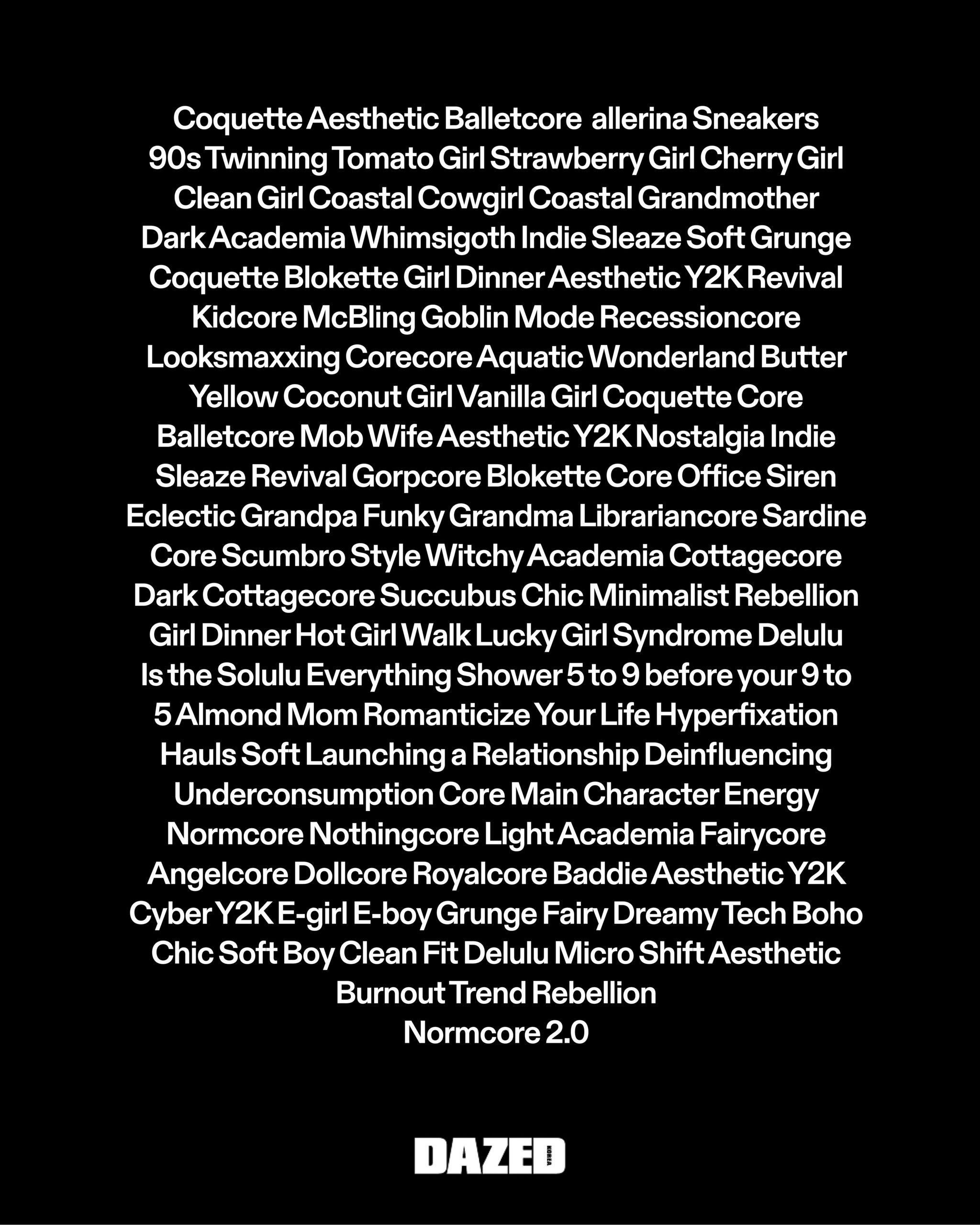 이 같은 상황은 마이크로 트렌드도, 그에 대한 저항도 밈meme처럼 소비되고 있다는 생각을 하게 만든다. 결국 패션미래학자 제럴딘 와리Geraldine Wharry의 “지금의 트렌드 분석은 진짜 문화 창조가 아니라 조회수를 좇는 바이럴 경쟁”이라는 말을 떠오르게 한다. 트렌드에 대한 저항이 또 다른 트렌드로 바뀌는 모습을 보면서 문득 이런 생각이 든다. 결국 우리가 찾던 ‘나만의 개성’은 더 이상 특정 스타일에 있지 않은 게 아닐까.
