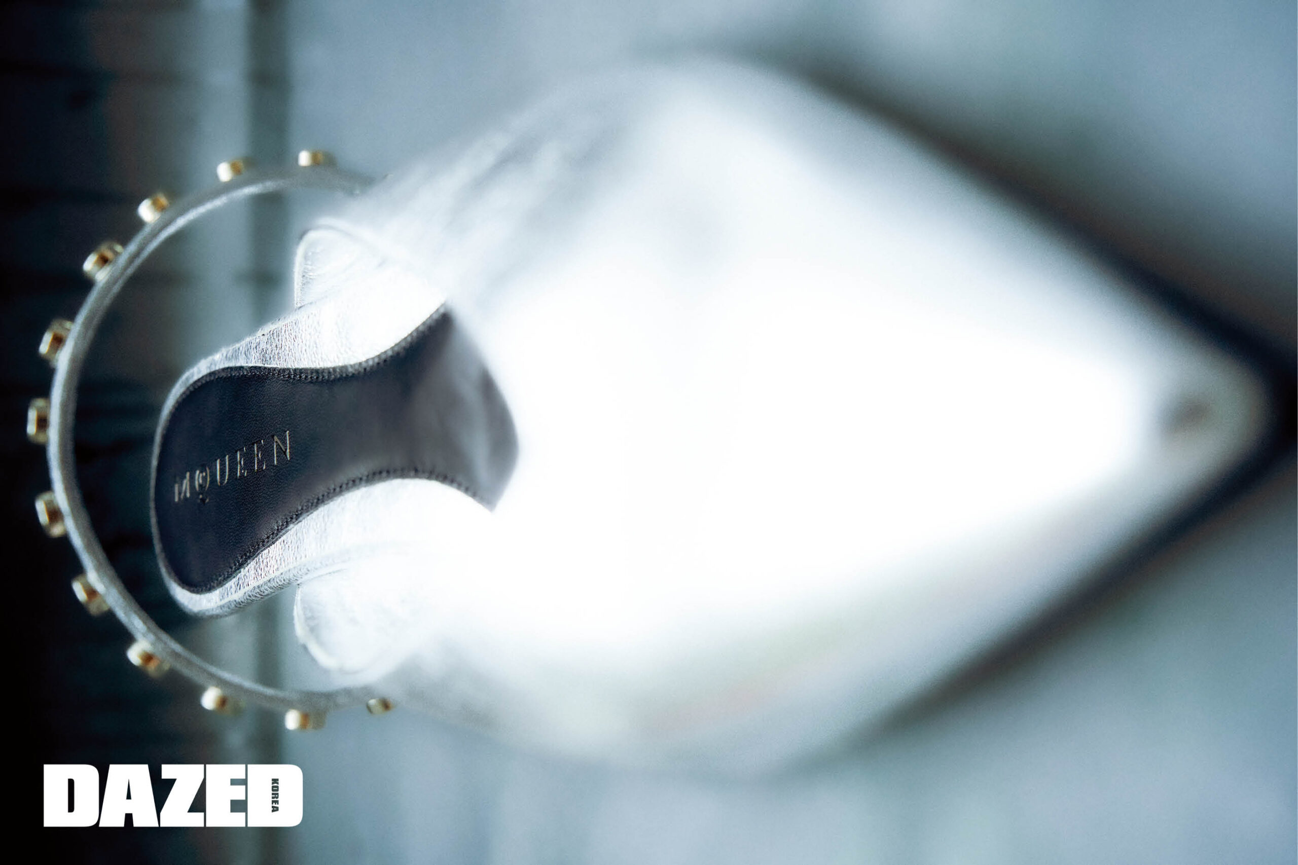스터드 디테일의 메탈릭 레더 뮬은 맥퀸(McQueen).