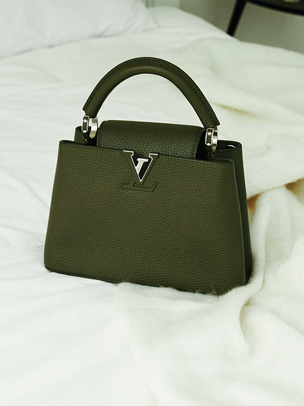플래티넘에 마키즈 컷 다이아몬드와 라운드 브릴리언트 컷 다이아몬드를 세팅한 티파니 빅토리아 얼터네이팅 그래듀에이티드 네크리스, 18K 옐로 골드에 라운드 브릴리언트 컷 다이아몬드를 세팅한 식스틴 스톤 바이 티파니 후프 이어링, 오른손 약지에 착용한 18K 로즈 골드에 라운드 브릴리언트 컷 다이아몬드를 세팅한 식스틴 스톤 바이 티파니 링, 18K 옐로 골드에 플래티넘 라운드 브릴리언트 컷 다이아몬드를 세팅한 식스틴 스톤 바이 티파니 링, 18K 옐로 골드에 라운드 브릴리언트 컷 다이아몬드를 세팅한 식스틴 스톤 바이 티파니 브레이슬릿, 플래티넘에 마키즈 컷 다이아몬드와 라운드 브릴리언트 컷 다이아몬드를 세팅한 티파니 빅토리아 테니스 브레이슬릿, 왼손 중지에 착용한 플래티넘에 라운드 브릴리언트 컷 다이아몬드를 세팅한 식스틴 스톤 바이 티파니 링은 모두 티파니(Tiffany & Co.), 코발트블루 컬러의 스웨이드 드레스는 가브리엘라 허스트(Gabriela Hearst).
