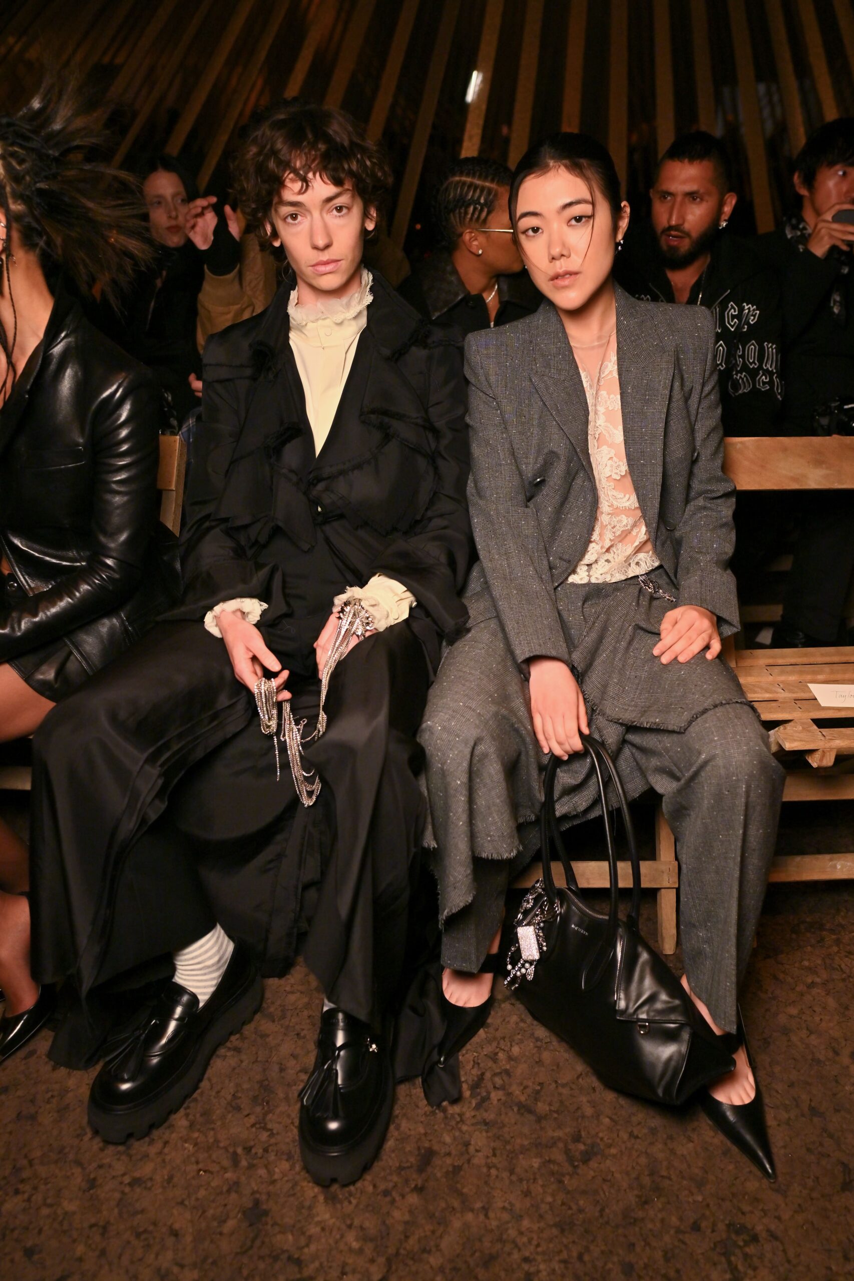 맥퀸의 2026년 봄/여름 컬렉션은 본능과 질서의 충돌을 주제로 한다. 로빈 하디 감독의 영화 <The Wicker Man>에서 영감을 받아, 절제와 해방, 문명과 자연 사이의 긴장을 컬렉션으로 풀어냈다. 제복 구조를 해체한 재킷과 코르셋 드레스, 로우라이즈 실루엣으로 재해석한 범스터 팬츠, 불에 그을린 듯한 실크 시폰 드레스와 곤충 프린트는 하우스의 테일러링 전통을 바탕으로 원초적 에너지를 드러낸다. 무대 중앙에는 8,000 미터의 마끈과 천연 식물로 만든 거대한 ‘메이폴Maypole’ 구조물을 세워, 민속적 축제와 자연의 재생을 상징한다. 질서와 본능이 맞부딪히면서 탄생한 결과물.