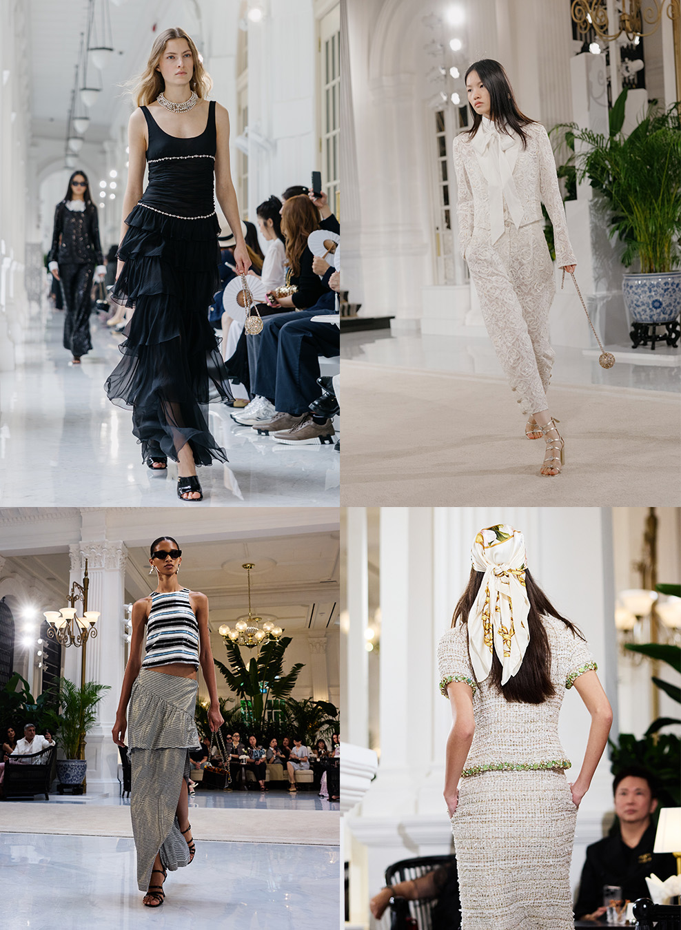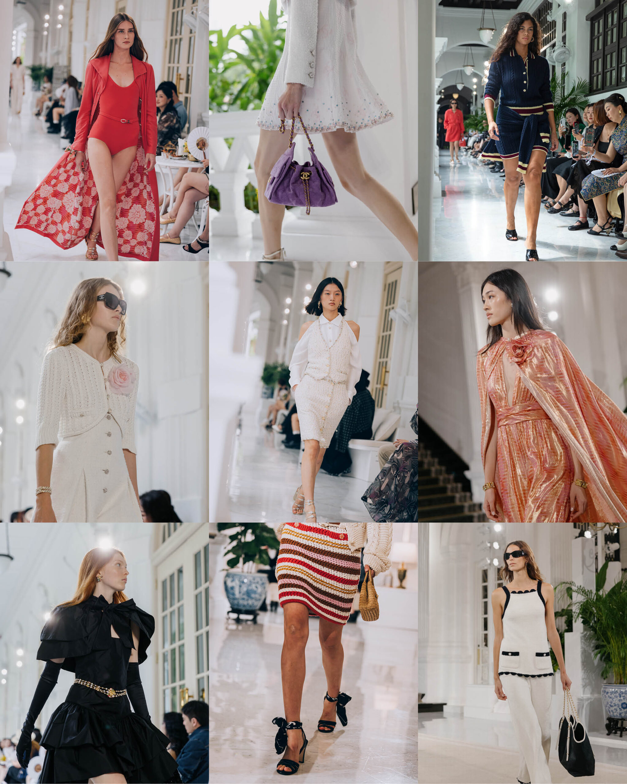 래플스 호텔의 복도 끝, 은은한 향이 공기 사이로 피어올랐다. 그 순간을 기억한다. 이탈리아 코모 호수의 빌라 데스테에서 처음 마주한 장면이 아직도 눈에 선하다. 고요한 물결과 대리석 기둥 사이로 스쳐 지나가던 찬란한 드레스의 빛, 그 여운이 열대의 밤공기 속에 다시 스며들었다. 지난 4월, 빌라 데스테에서 선보인 샤넬의 2025/26 크루즈 컬렉션이 싱가포르의 전설적인 래플스 호텔로 옮겨 왔다. 코모 호수의 햇살은 싱가포르 바다의 습도를 만나, 또 하나의 새로운 패션 신scene을 만들었다.