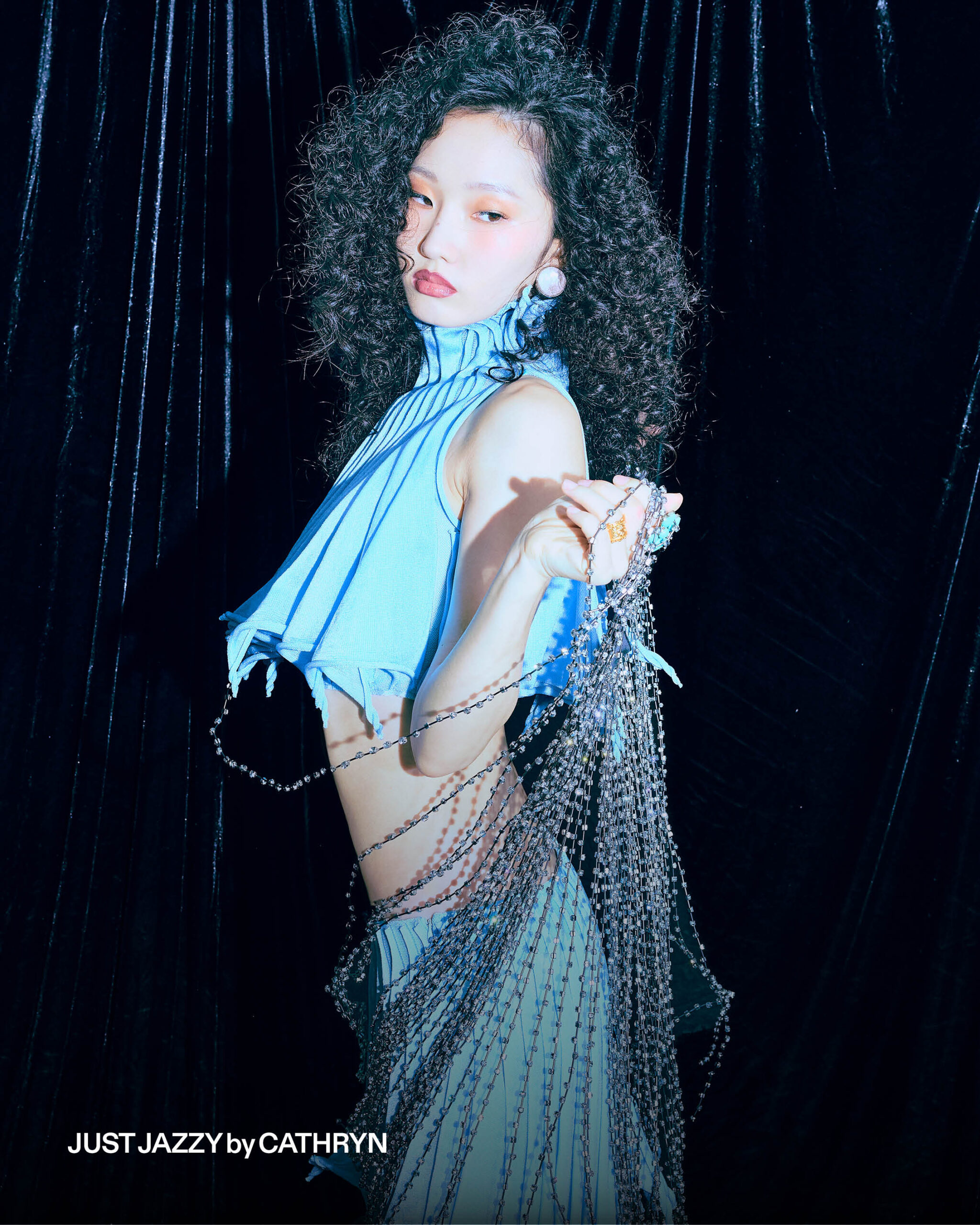 프린지를 닮은 구조적인 텍스처가 돋보이는 톱과 스커트, 이어링은 모두 알라이아(ALAÏA), 링은 토코키노(To Kokkino).