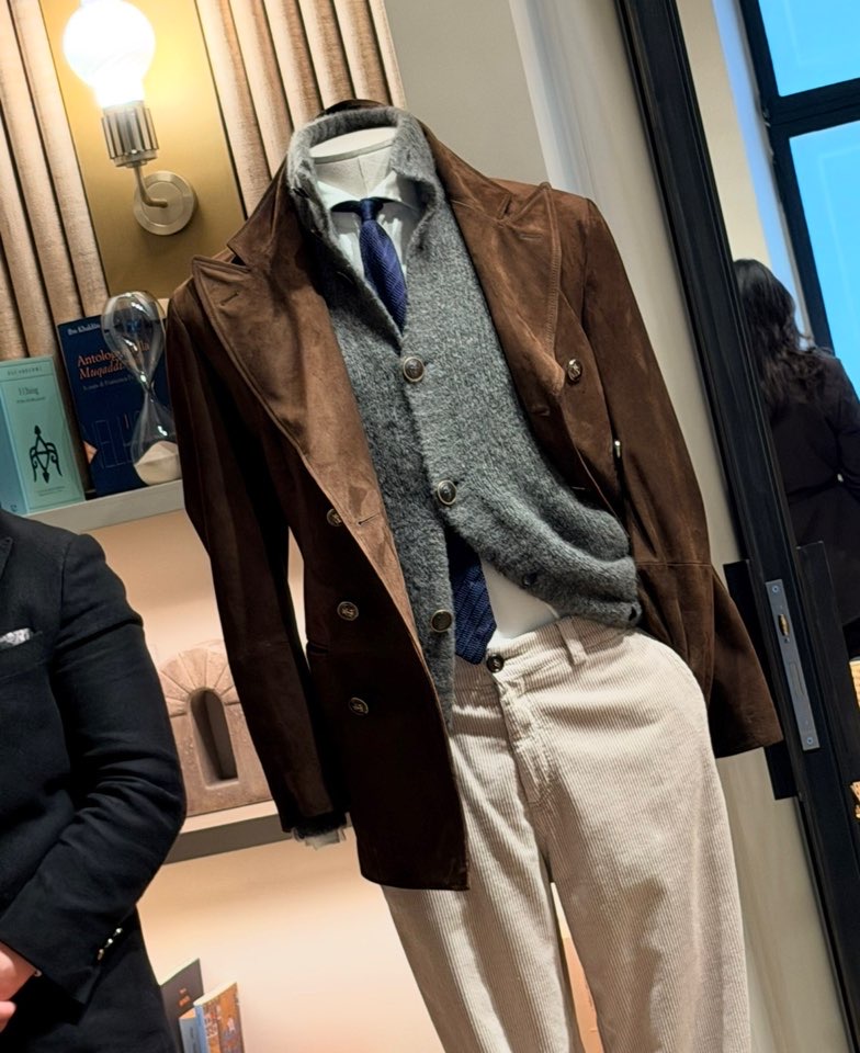 아리스토텔레스는 “예술을 자연을 모방한다”는 개념을 설명했다. 이는 훗날 ‘Ars Imitatur Naturam’이라는 문구로 정착한다. 브루넬로 쿠치넬리는 이를 ‘자연에서 비롯한 우아함’으로 해석한다. 자연을 좇는다. 자연스러운 아름다움을 찾기 위해서. 브루넬로 쿠치넬리 2026 가을/겨울 컬렉션의 자연은 거친 야생이 아닌, 생명을 감싸안는 온화한 질서에 가깝다. 유틸리티 디테일과 밀리터리 아카이브는 보호의 상징으로 치환되어 현대적 탐험가의 옷장에 안착한다. 자칫 느슨해질 수 있는 실루엣은 정교한 넥타이와 클래식한 슈즈를 매치해 팽팽하게 잡아당긴다. 편하지만 적절한 긴장감이 맴도는 룩을 만들 수 있도록. 많은 룩에서 포착되는 넥타이는 모두 싱글 노트 타이로 매어져 있다. 절제된 예의, 또는 쿠치넬리가 전하는 간결한 위트가 아닐까.