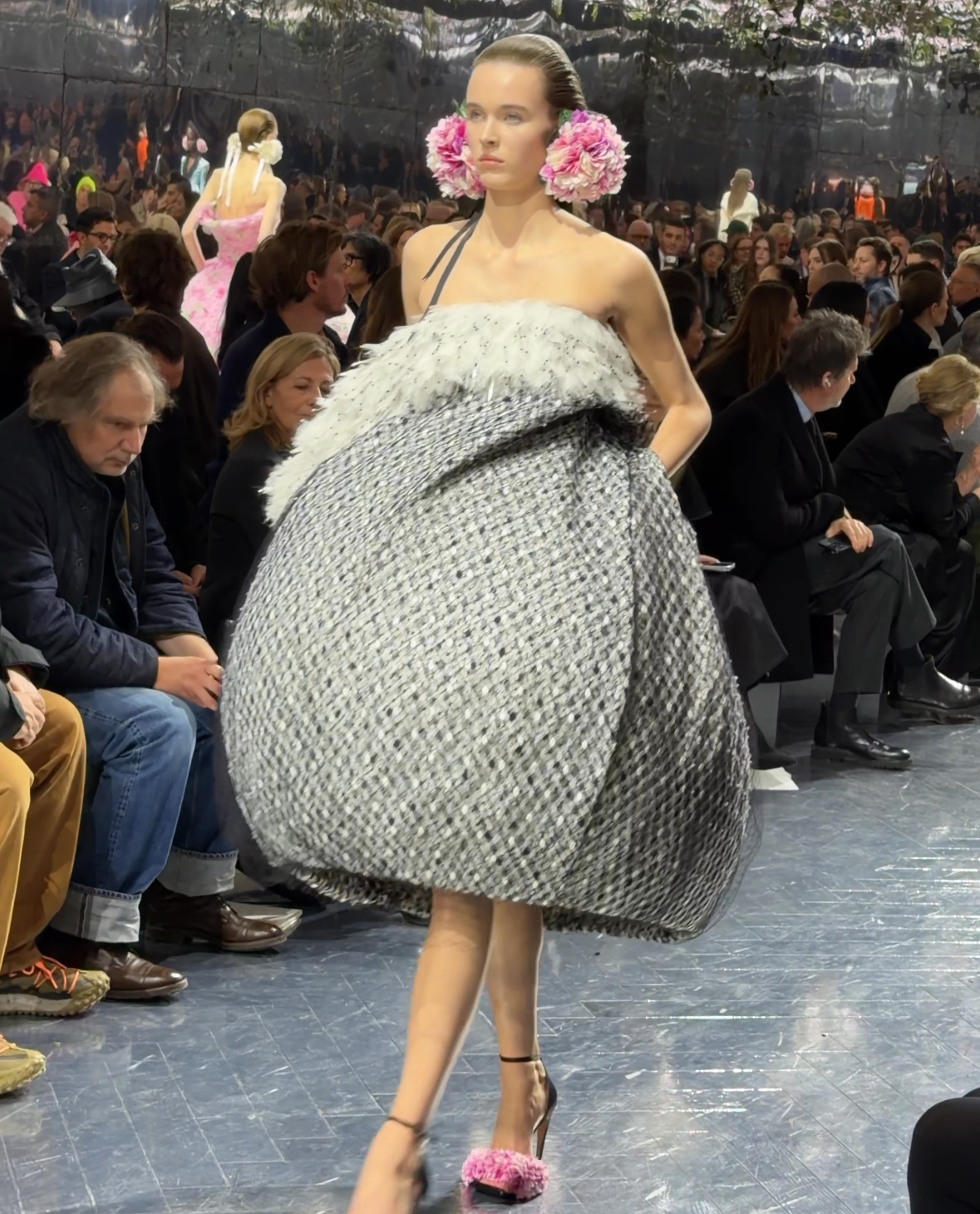 조나단 앤더슨의 디올, 첫 옷. 적막을 깨고 발 한발 쿵- 구른 다음 바로 MK.gee를 틀어버릴 때. 좀 뿅 감. 본색을 드러내심.