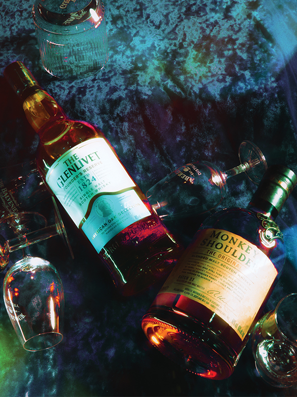 올오버 GG 프린트 디테일의 실크 트윌 셔츠와 코튼 캔버스 자카르 패브릭 스커트, 골드 메탈릭 힐 밤쉘 부츠, GG 마몽 골드 이어링은 모두 구찌(Gucci).