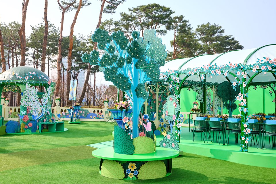 이번 행사에는 2018년부터 반클리프 아펠의 크리에이티브 파트너로 함께해 온 프랑스 아티스트 샬롯 가스토Charlotte Gastaut가 참여했다. 궁정 드레스의 실크에서 영감받은 파스텔 톤의 섬세한 일러스트레이션이 공간 전체를 감싼다. 나비와 새가 날아다니고 꽃이 만개한 정원에는 그네, 벤치, 다리 등 조형물이 어우러져 도심 속 봄날의 쉼표 같은 경험을 선사한다.