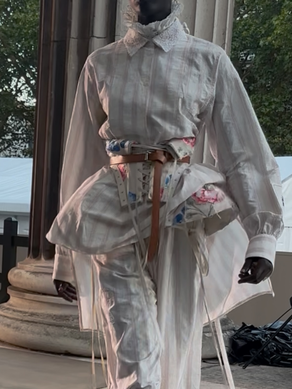 이번 시즌 애슐리 윌리엄스는 유년의 기억과 상상력을 불러냈다. 런웨이에는 민트·베이비 핑크 같은 파스텔 톤의 유니폼, 아이의 낙서 같은 프린트가 새겨진 파자마, 곳곳에 숨어 있는 쿠션 패드, 장난감 핀을 연상시키는 키치한 액세서리 등 익숙한 물건들이 낯설게 변주됐다. 화장지 롤을 뱅글처럼 연출한 디테일에선 특유의 유머 감각을 엿볼 수 있다.