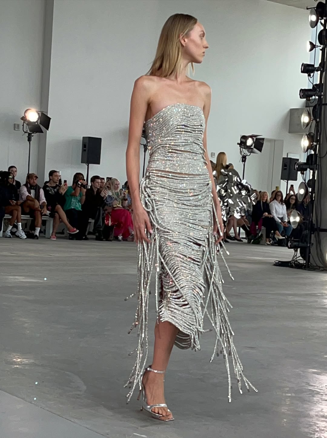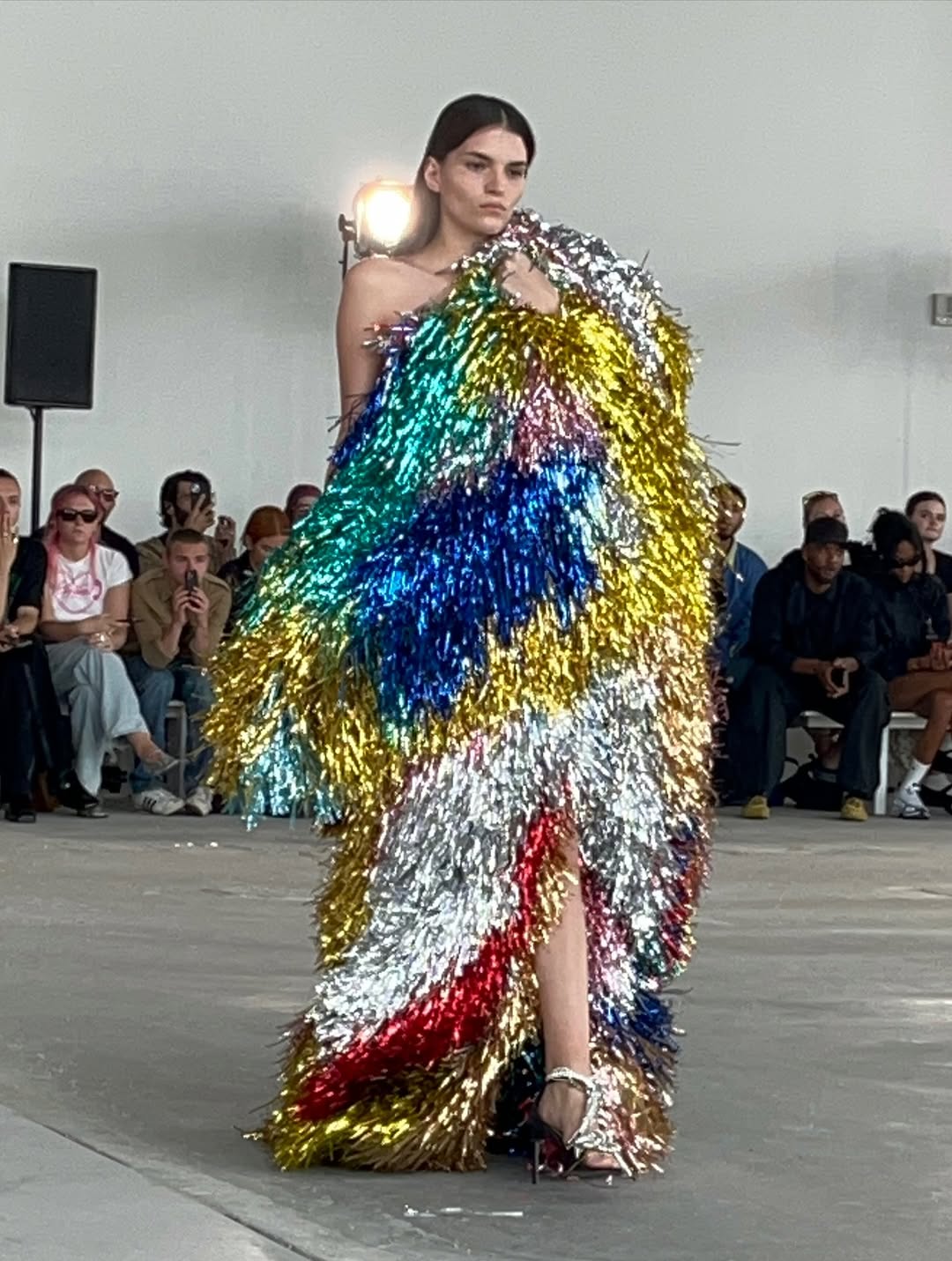 춤판이 벌어졌다. 각기 다른 개성을 가진 모델들이 자신만의 리듬을 타며 런웨이를 댄스 플로어로 바꿔놨다. 미러볼처럼 눈부신 룩이 주를 이뤘고 형형색색으로 물든 드레스가 있는가 하면 타이 다이 드레스, 챕스(카우보이가 바지 위에 덧입는 팬츠) 등 의상 또한 다채롭다. 백스테이지에서 디자이너를 만났다. ’FASHION NOT FASCISM‘라 쓰여 있는 그의 티셔츠가 먼저 눈에 들어왔다. 이번 시즌의 메시지가 무엇이냐고 묻자 대답 대신 티셔츠를 가리킨다. 억압 대신 자유를, 획일 대신 다양성이 존중받는 사회를 위해.