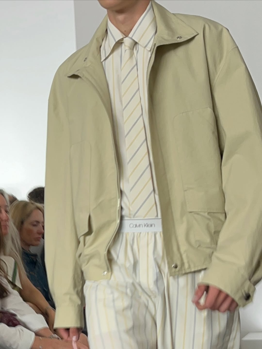 캘빈클라인, 베로니카 레오니의 두 번째 무대. 그의 시선은 거리의 무심함을 고급스럽게 전환하는 데 있다. 같은 톤의 셔츠와 타이, 팬츠를 매치하거나 레더 봄버를 치노팬츠와 함께 스타일링 하는 것. 캘빈클라인의 힘은 언제나 절제와 정제 그리고 형태의 힘에서 나온다. 이번 시즌에서 유독 눈이 갔던 건, 아이코닉한 ‘Calvin Klein’ 레터링의 타이츠와 아이웨어. 레오니가 이번에도 역시 여전히 럭셔리를 새로운 차원으로 밀어붙이고 있음을 증명했다. 쇼의 음악으로 AIR의 ‘Sexy Boy’가 나왔을 땐, 괜히 웃음이 났다. 언더웨어의 전설!