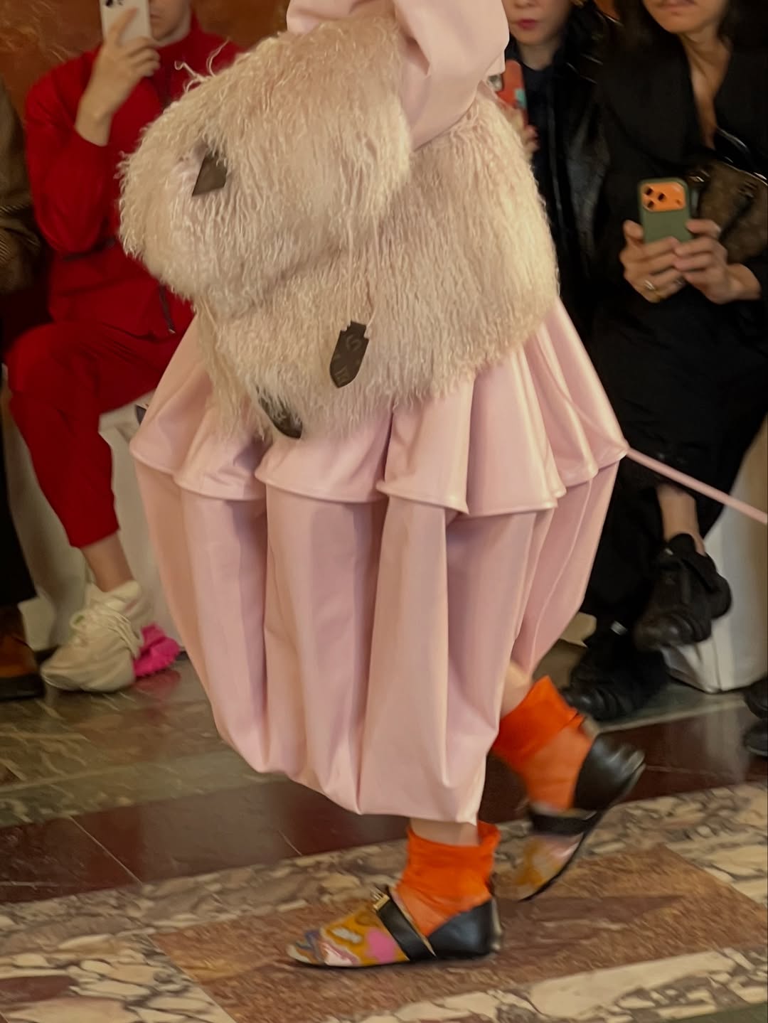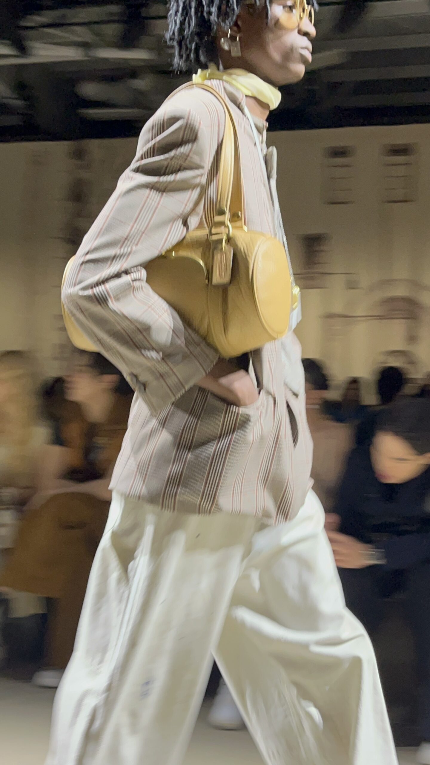 펜디의 쇼는 마치 유리잔에 담긴 노랑 레몬수 같았다. 표면은 단순해 보이지만, 안쪽에는 거품이 피어오르고 그 사이로 햇빛이 투명하게 굴절되었다. 실비아 벤투리니 펜디가 말한 ‘이중성’이라는 건 아마 그런 것이었을 거다. 한쪽에서는 무심히 흘러가고, 다른 쪽에서는 기묘하게 집요한 정밀함이 고개를 든다. 나는 그 균형을 음악 속 베이스의 떨림처럼 느꼈다.