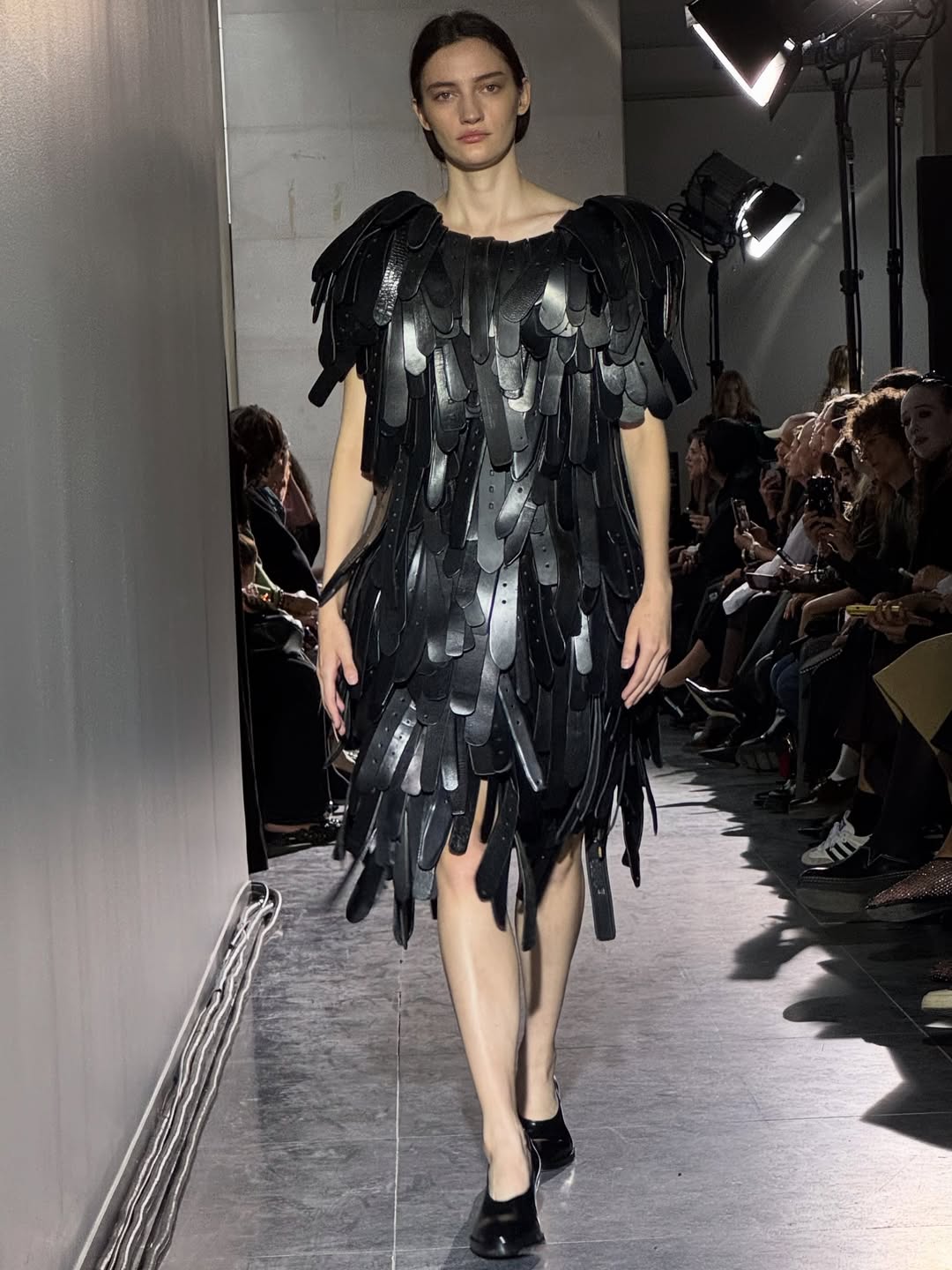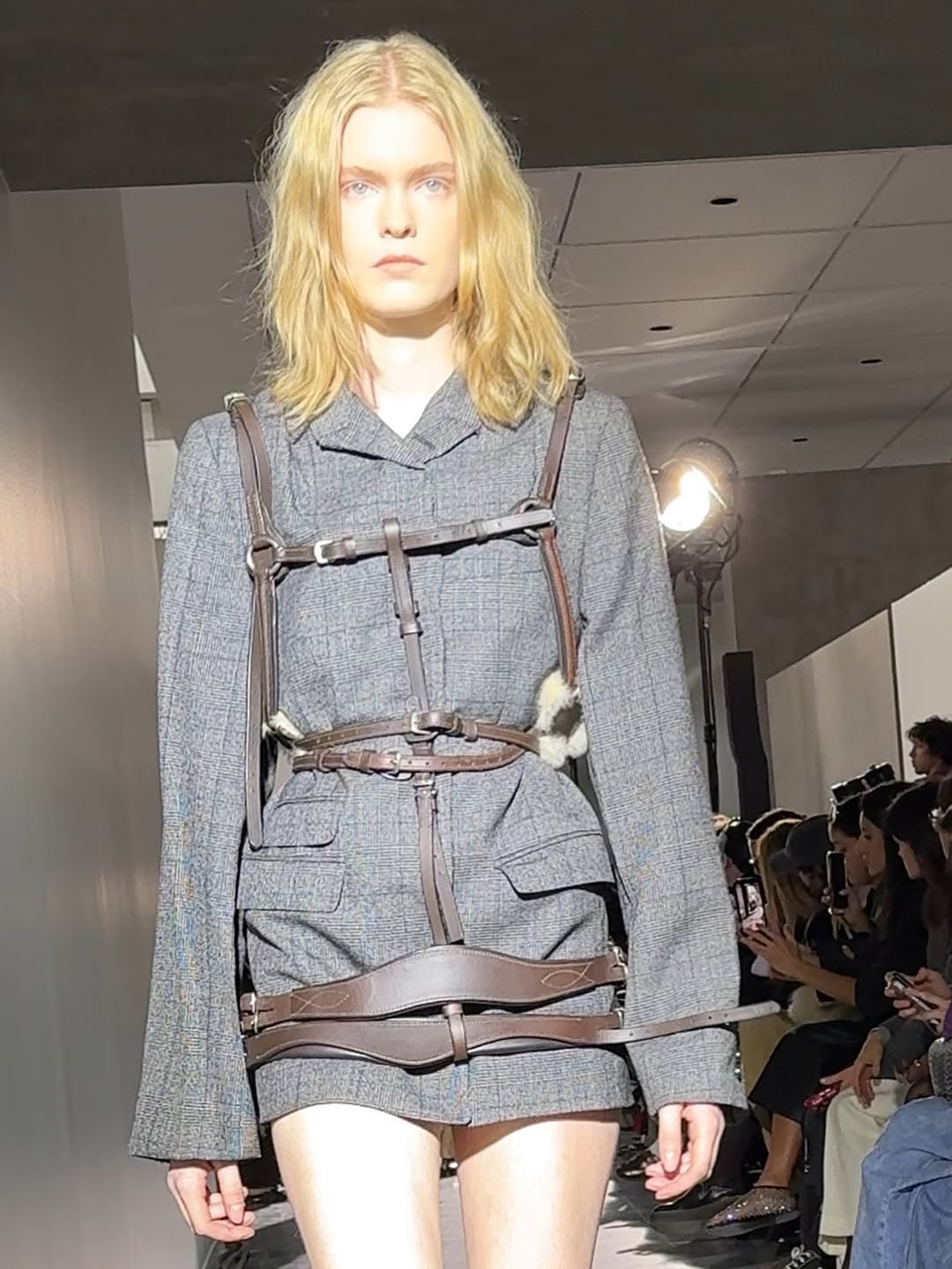 또각또각. 나무 바닥 위를 걷는 구두 소리, 쇠사슬이 끌리는 소리, 철문을 여는 소리로 쇼가 시작됐다. 숨 죽인 관객 사이로 모델들은 비틀비틀 불안정하게 걷는다. 라텍스, 가죽, 코르셋, 메탈릭, 스터드 등 BDSM을 연상케 하는 디테일 속에서 자유와 속박, 순수함과 욕망을 동시에 보았다.